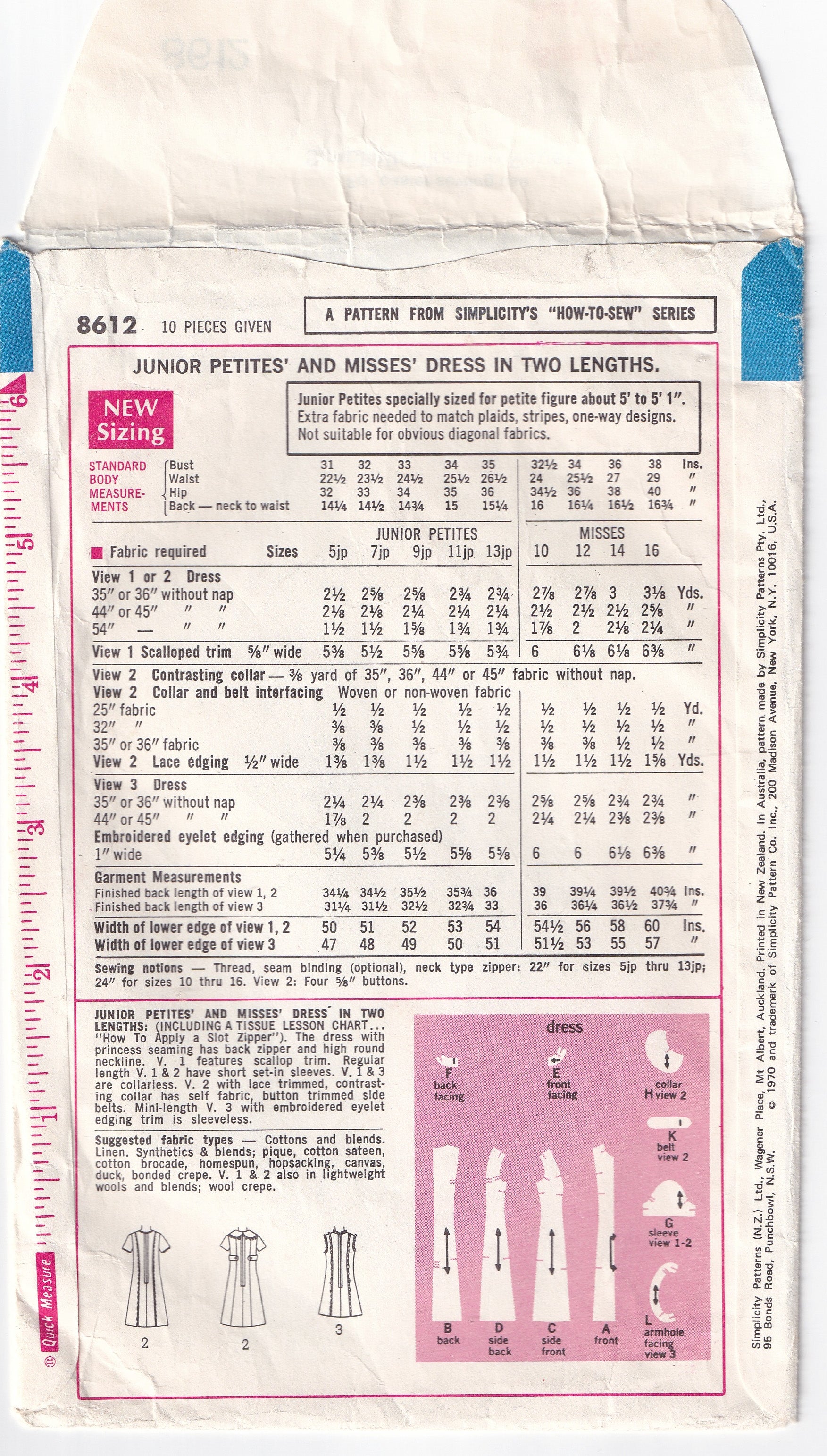 Simplicity 8612 vintage sewing pattern, dated 1969.