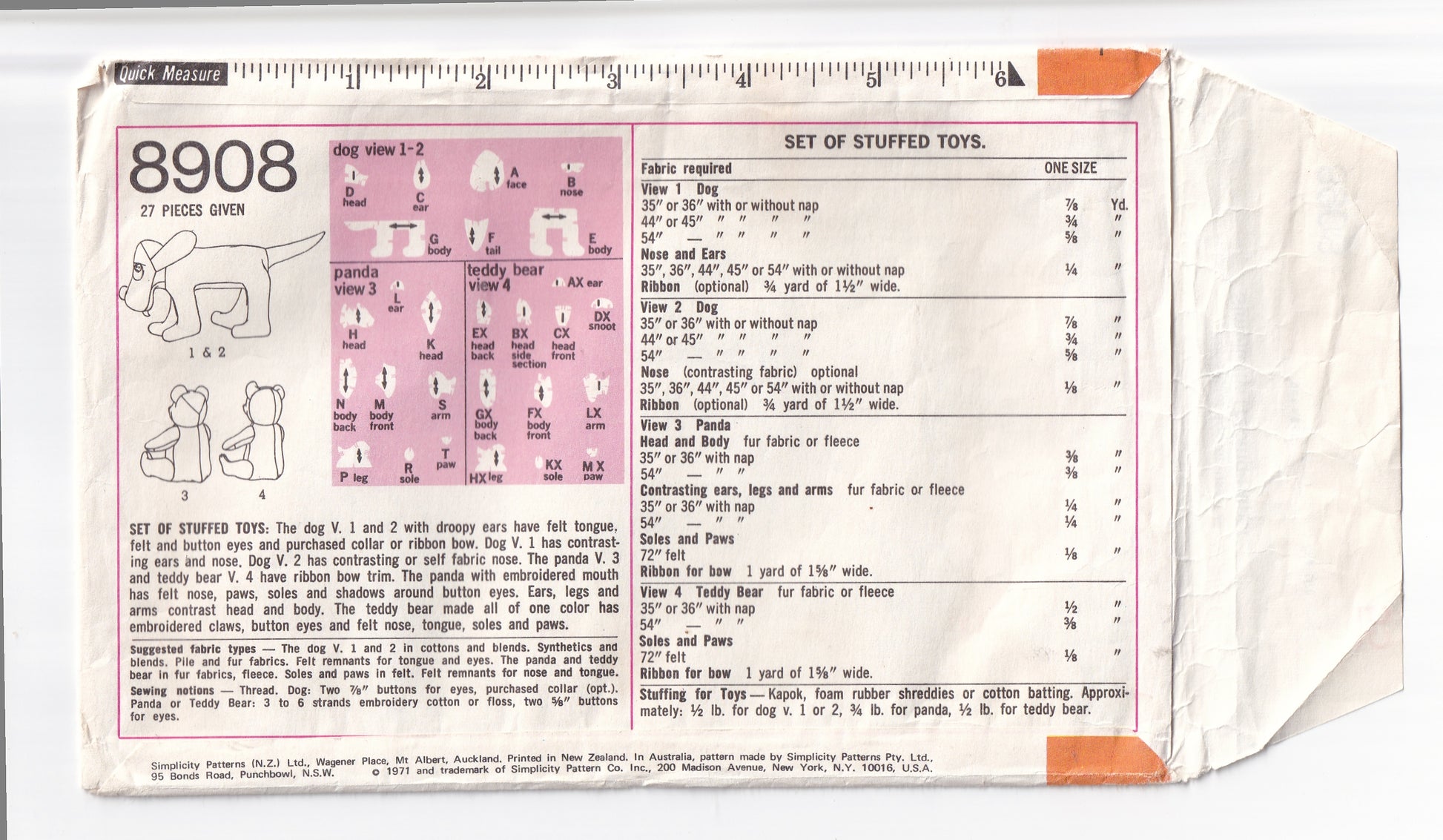 Patrón de costura vintage de los años 70 Simplicity 8908 RETRO de peluche de oso panda y cachorro