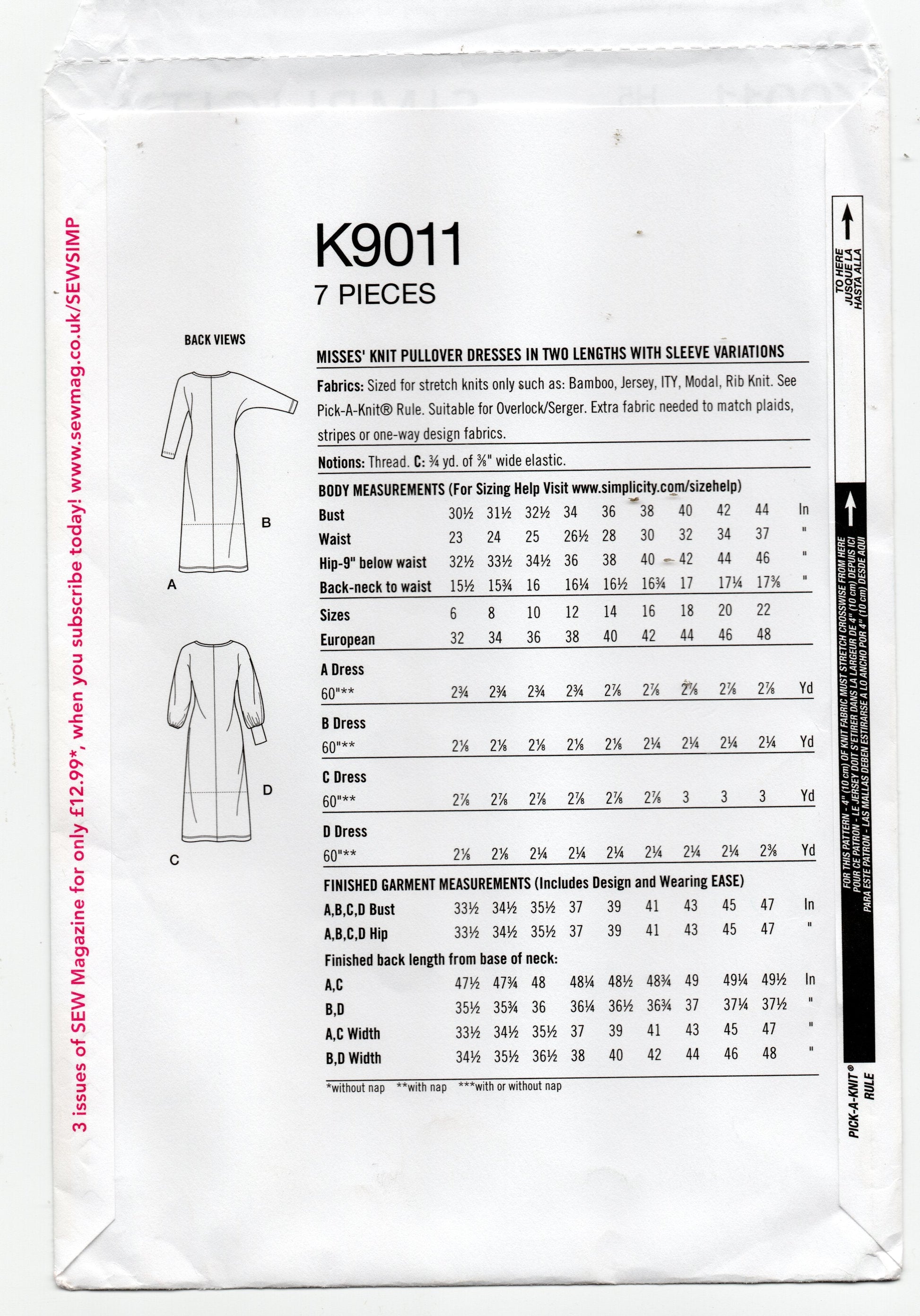 Patrón de costura Simplicity K9011, fechado en 2020, ahora agotado.