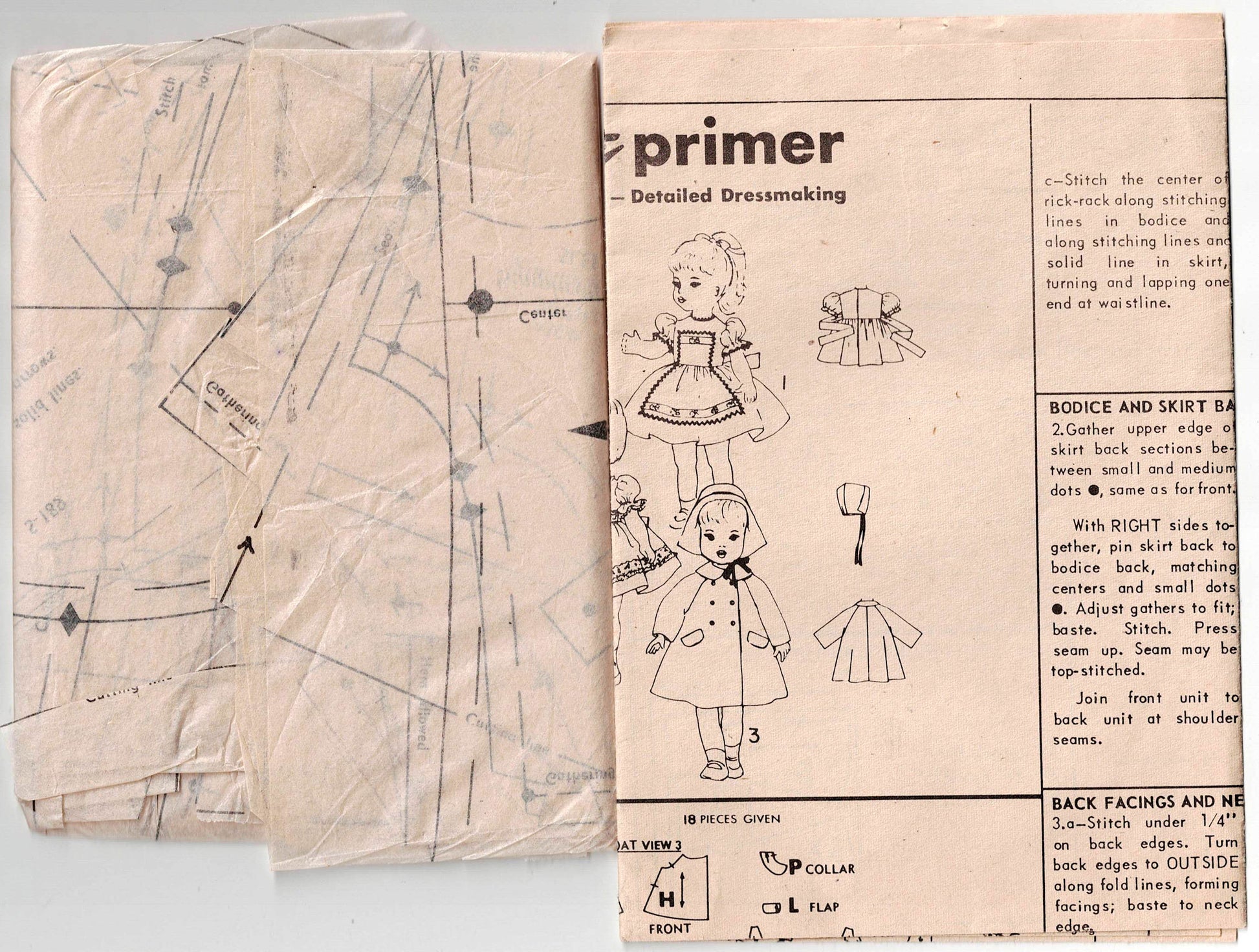 Patrón de costura vintage de los años 60 Simplicity s.189 para guardarropa retro para muñecas grandes de 22 pulgadas con andador