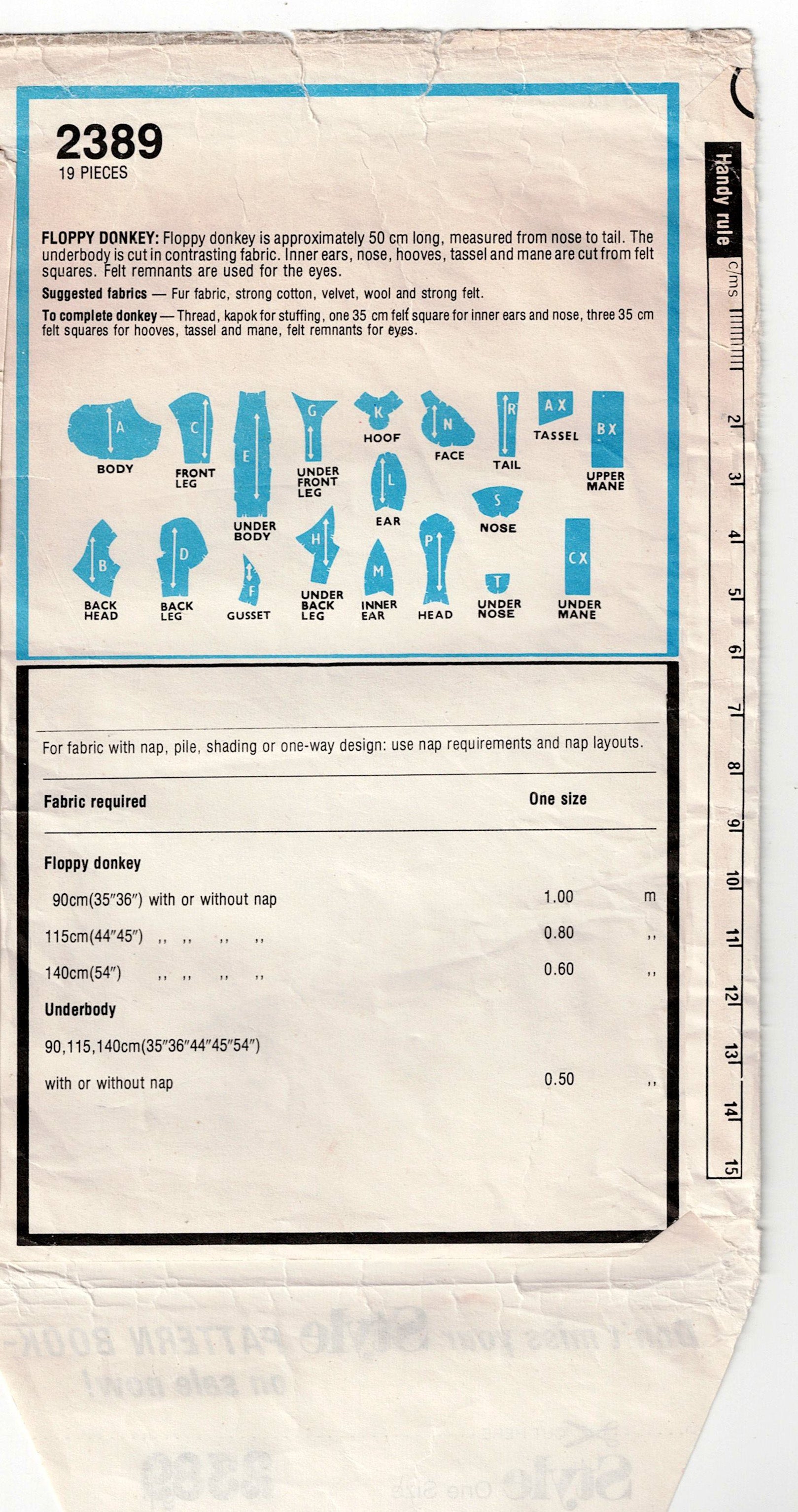 Style 2389 Stuffed Toy Donkey 1970s Vintage Sewing Pattern UNCUT Factory Folded