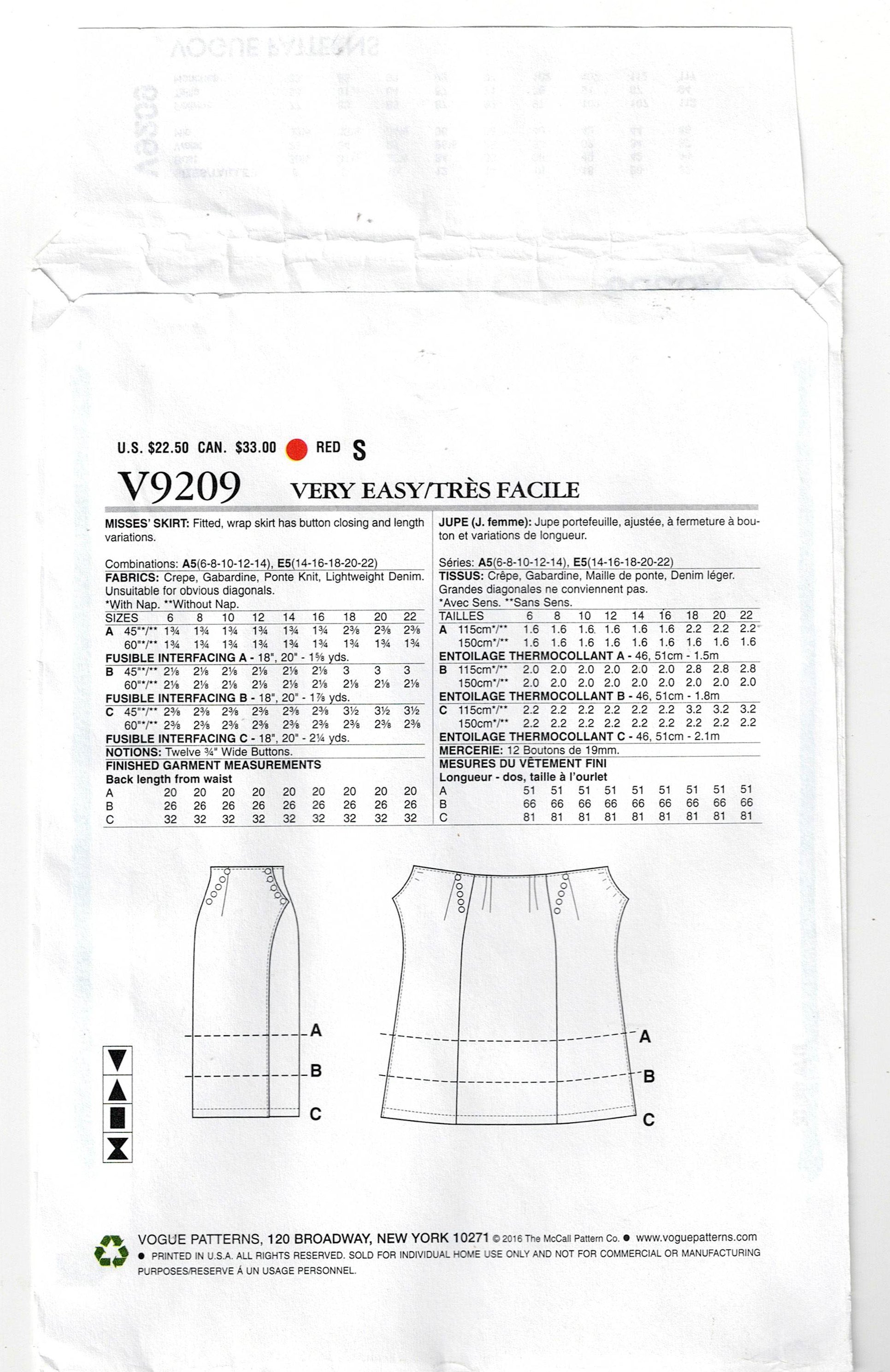 Very Easy Vogue 9209 Womens Wrap Skirt with Button Trim Out Of Print Sewing Pattern Size 14 - 22 UNCUT Factory Folded