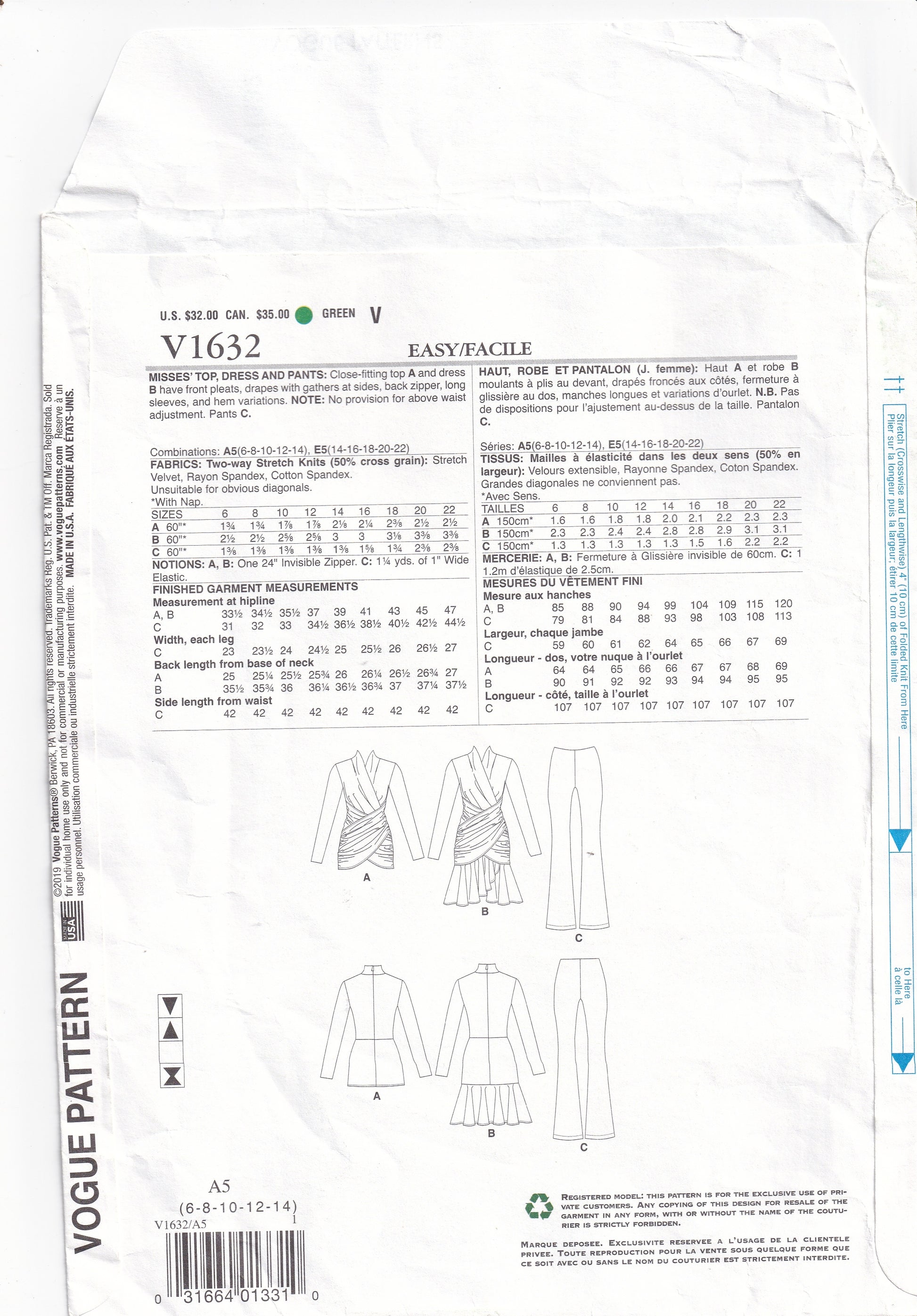 Vogue 1632 out of print paper sewing pattern, dated 2019.