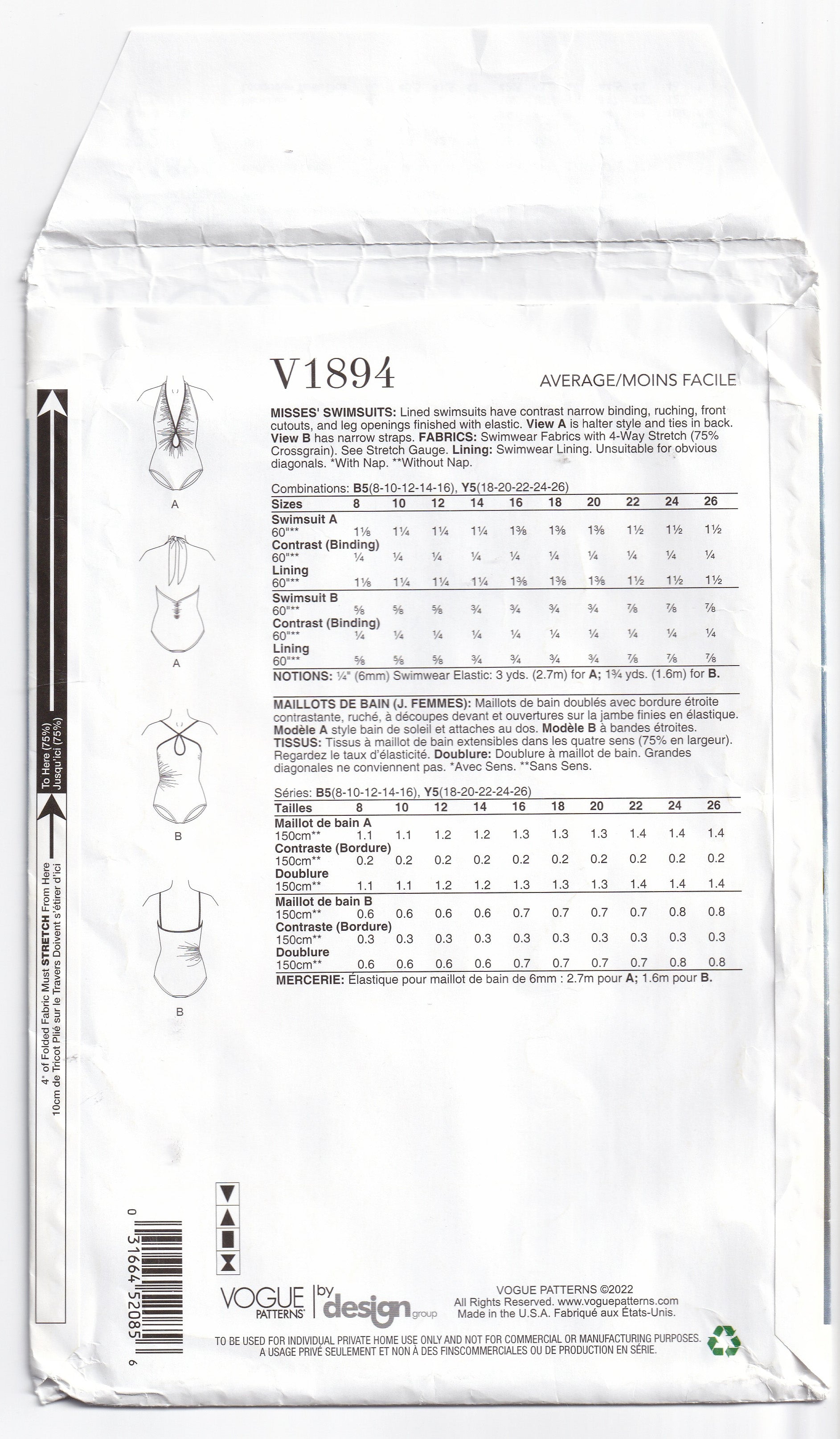 Vogue 1894 sewing pattern, dated 2024.