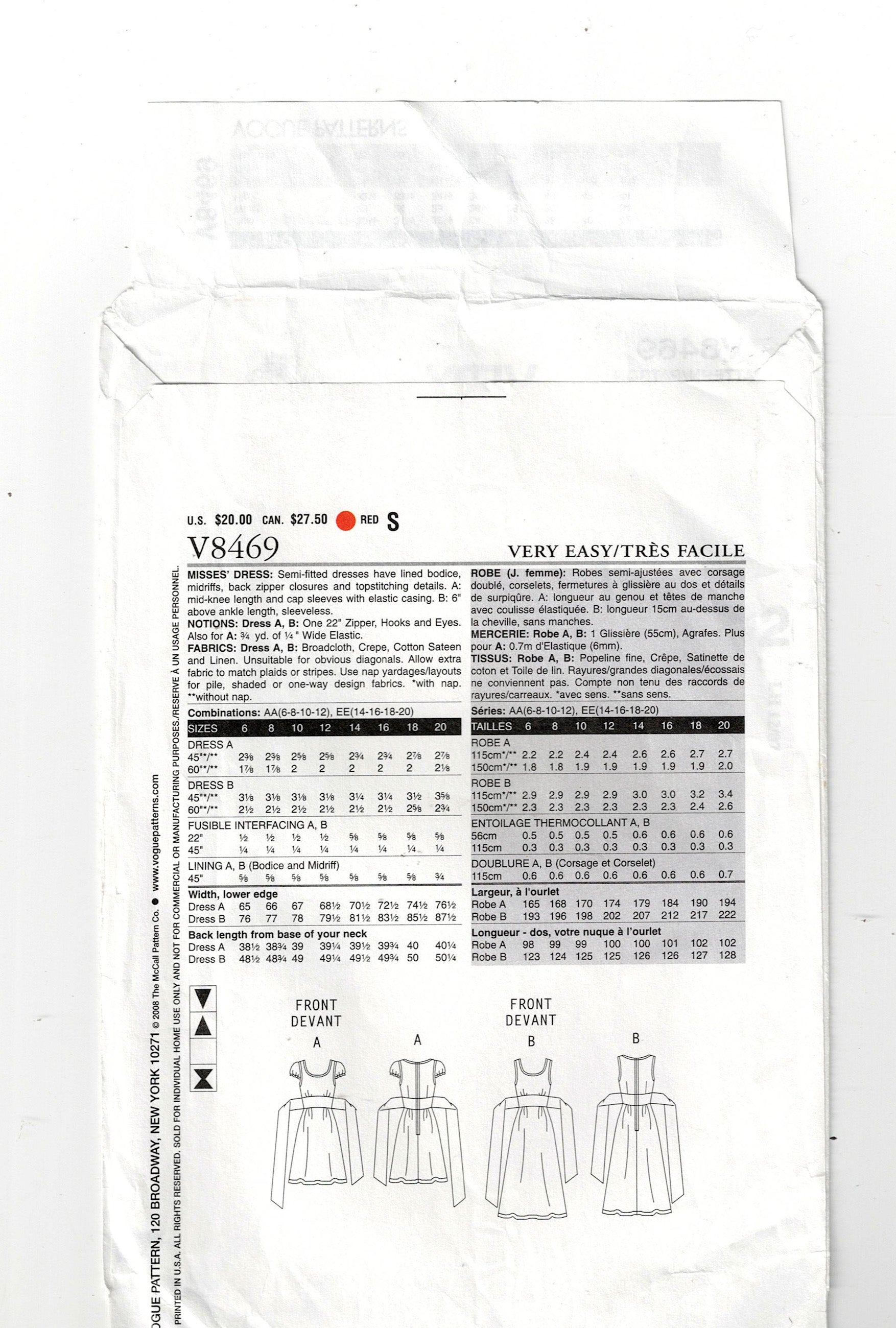 Vogue 8469 sewing pattern, dated 2007, now out of print.