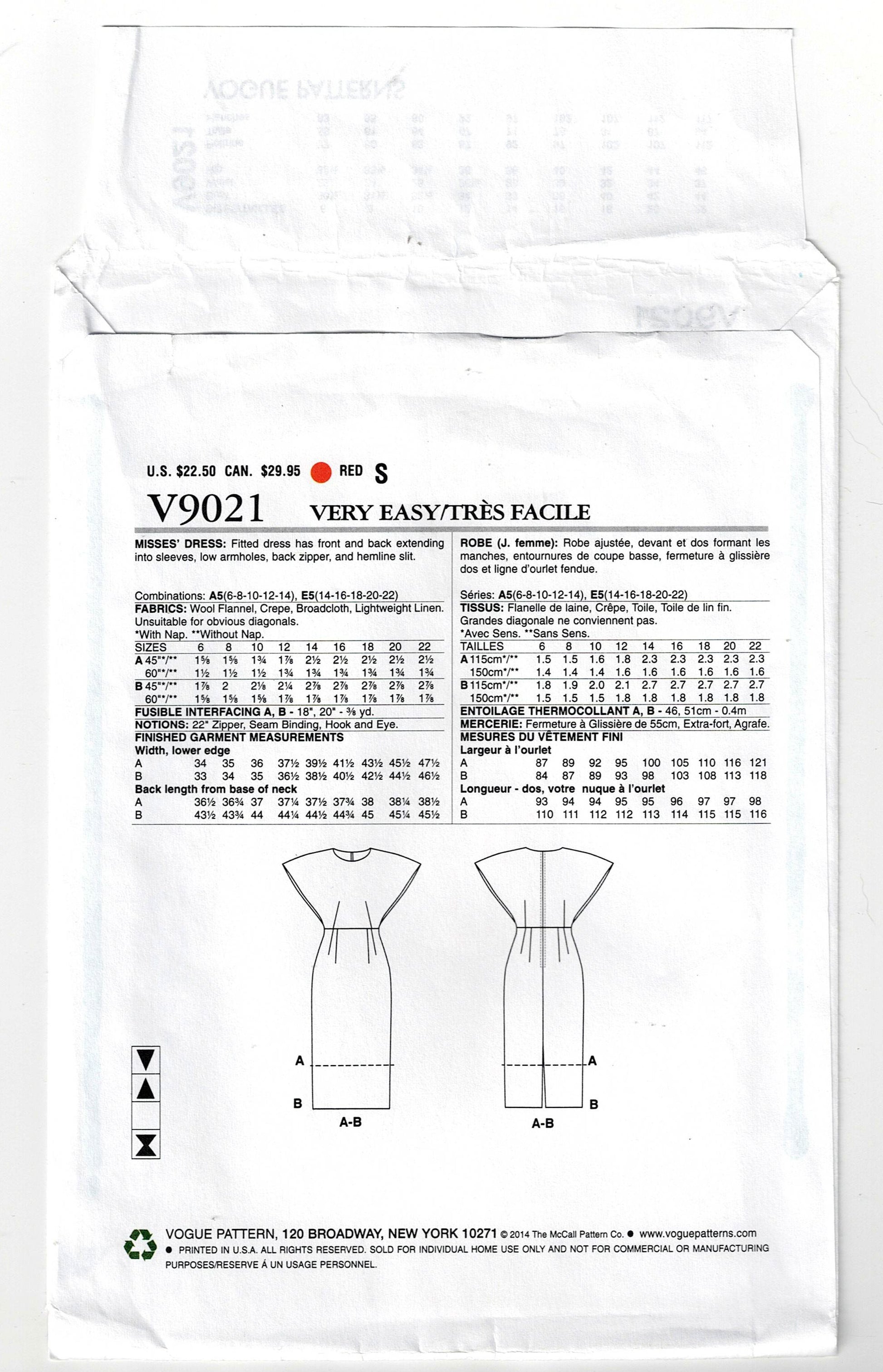 Vogue V9021 sewing pattern, dated 2016, now out of print.
