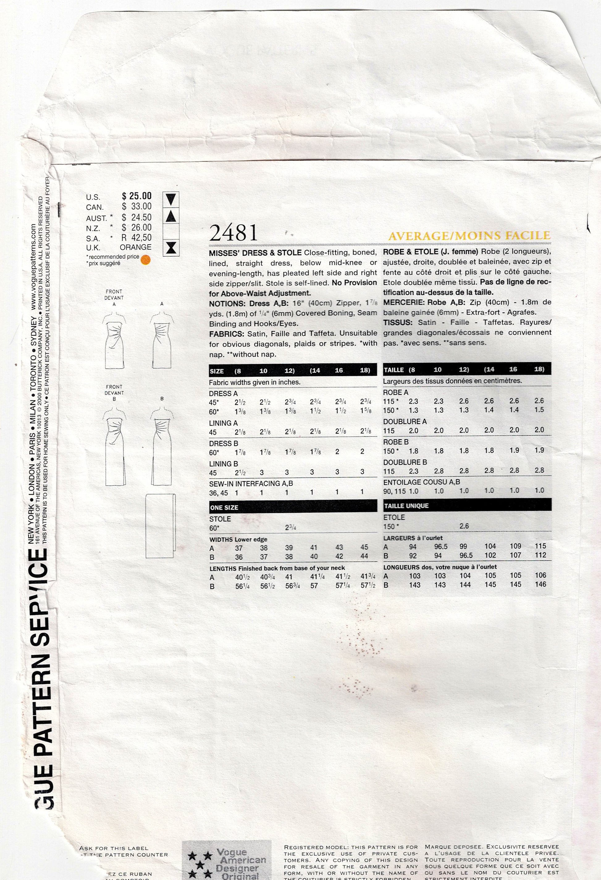 Vogue American Designer 2481 sewing pattern, dated 2002, now out of print.