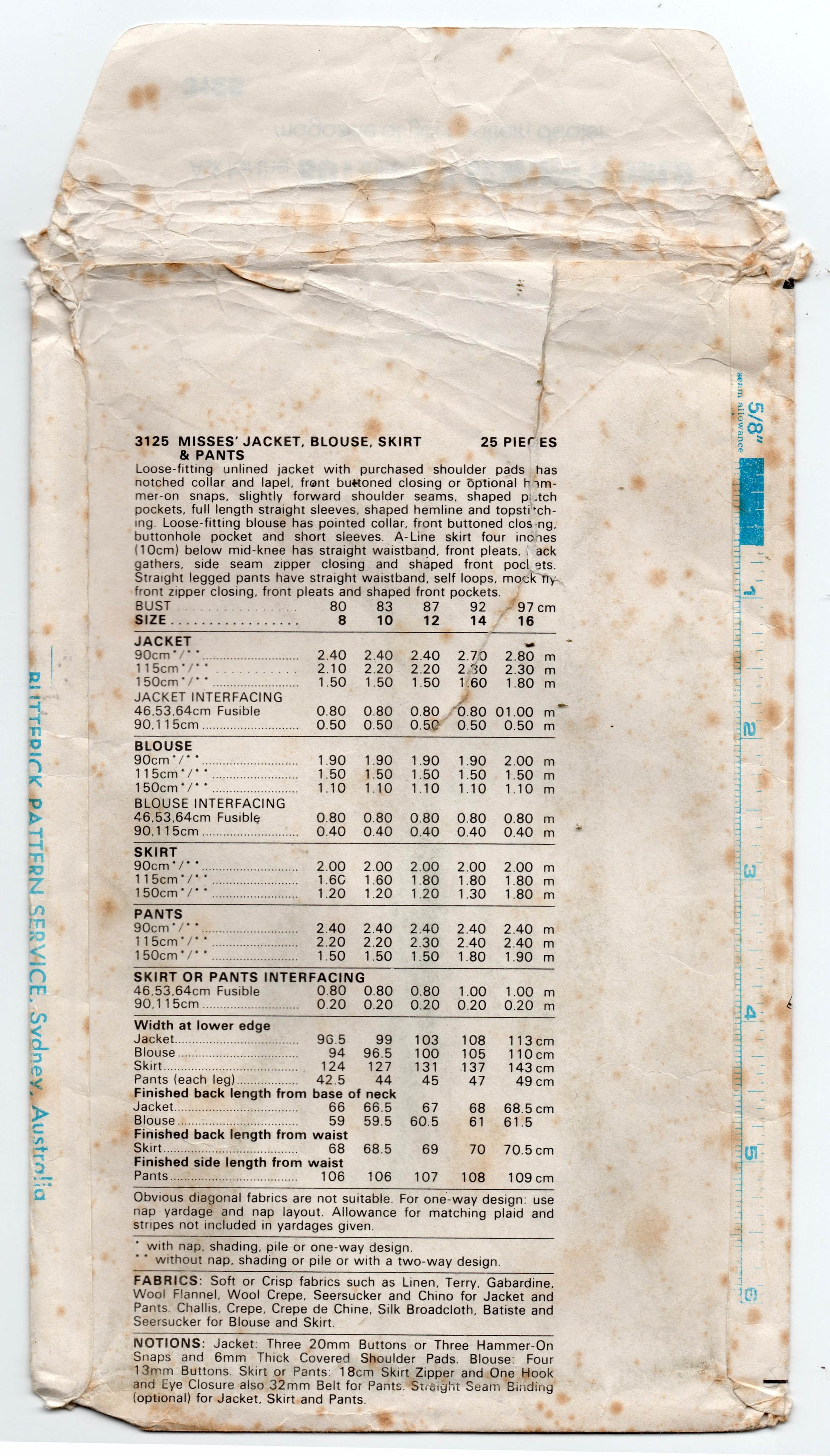 Butterick 3125 vintage sewing pattern, dated ca 1979.