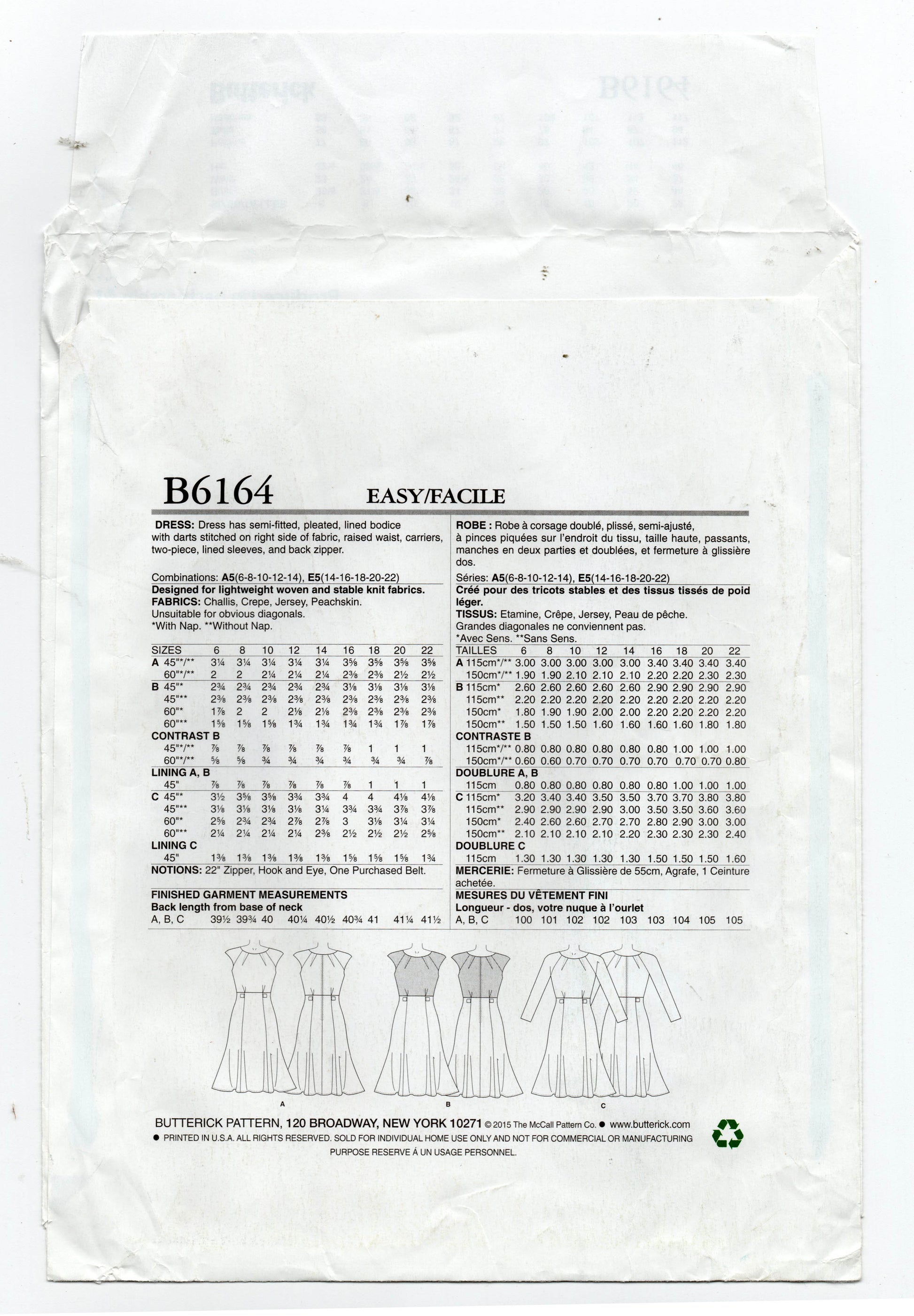 Butterick B6164 sewing pattern, dated 2015, now out of print.