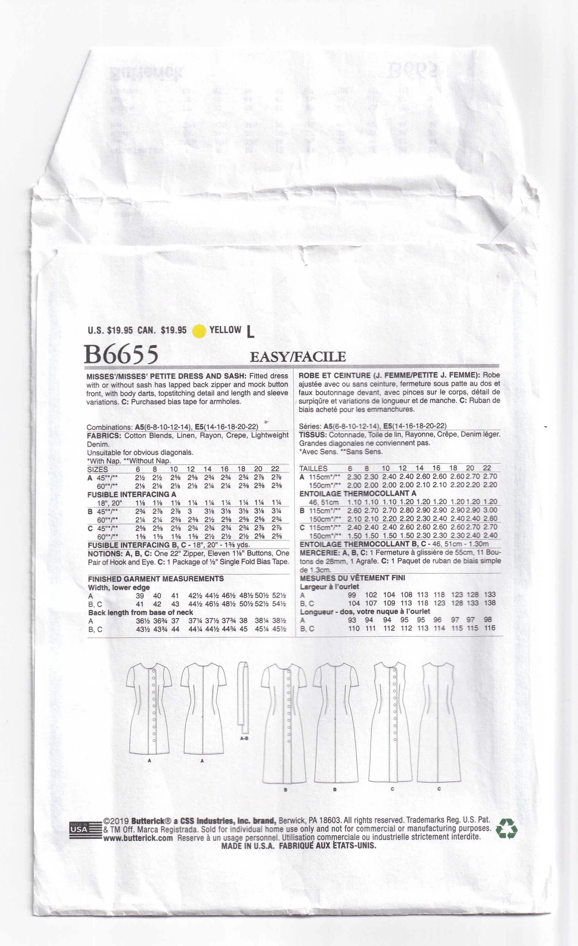 Butterick 6655 out of print paper sewing pattern, dated 2016.