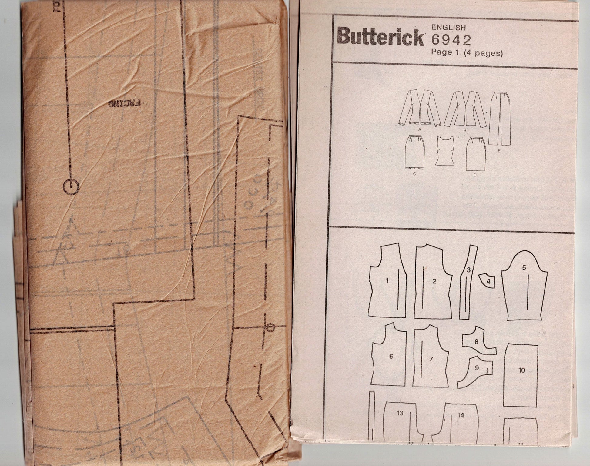 Butterick 6942 Womens Casual Wardrobe Jacket Skirt Top & Pants Out Of Print Sewing Pattern Size 12 - 16 UNCUT Factory Folded