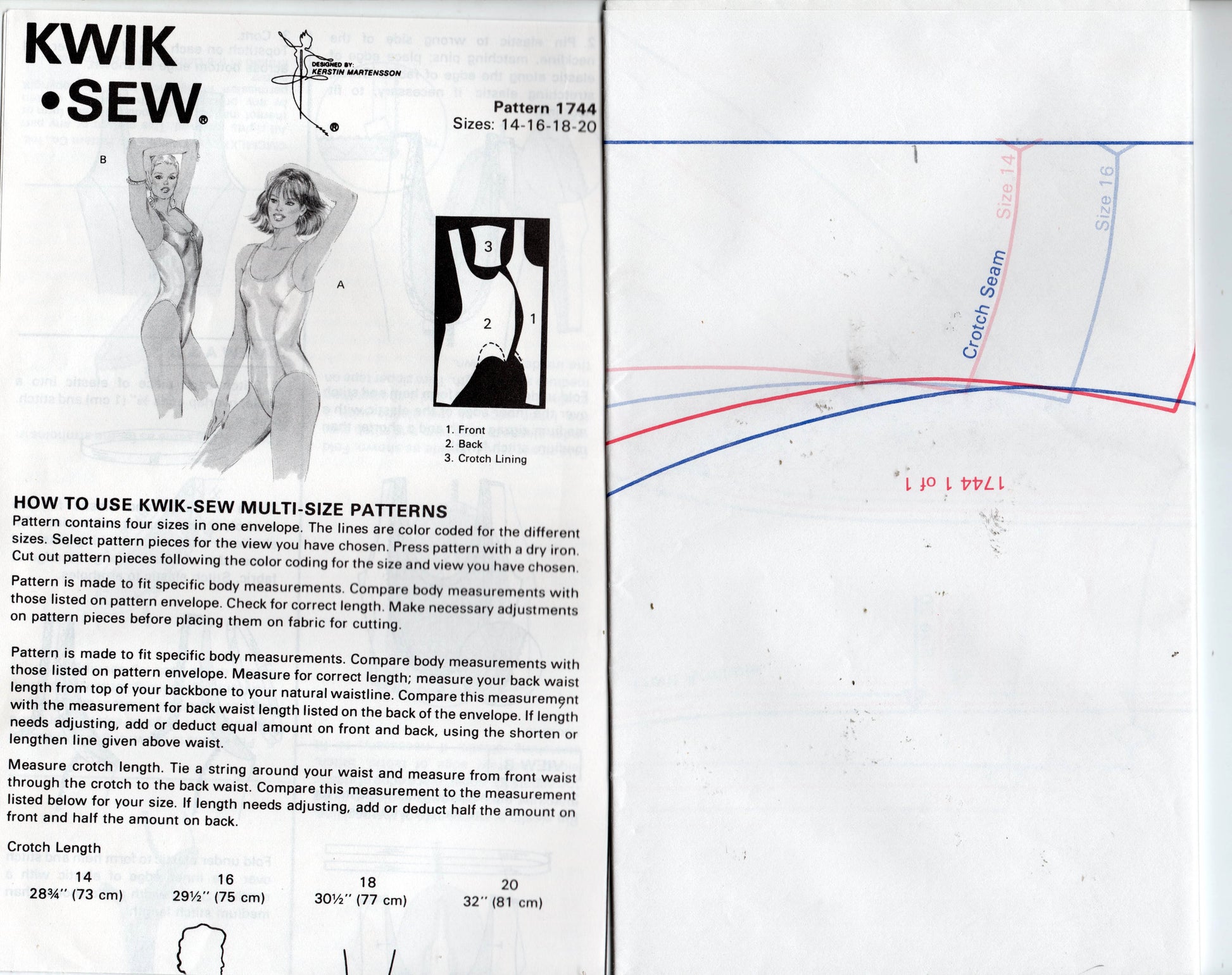 Kwik Sew 1744 Womens High Cut Leg Racing Swimsuits 1980s Vintage Sewing Pattern Bust 38 - 43 inches UNCUT Factory Folded