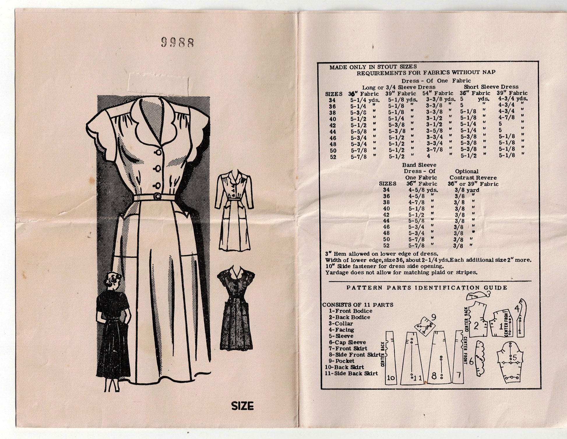 Mail Order 9988 vintage sewing pattern, dated ca late 1940s