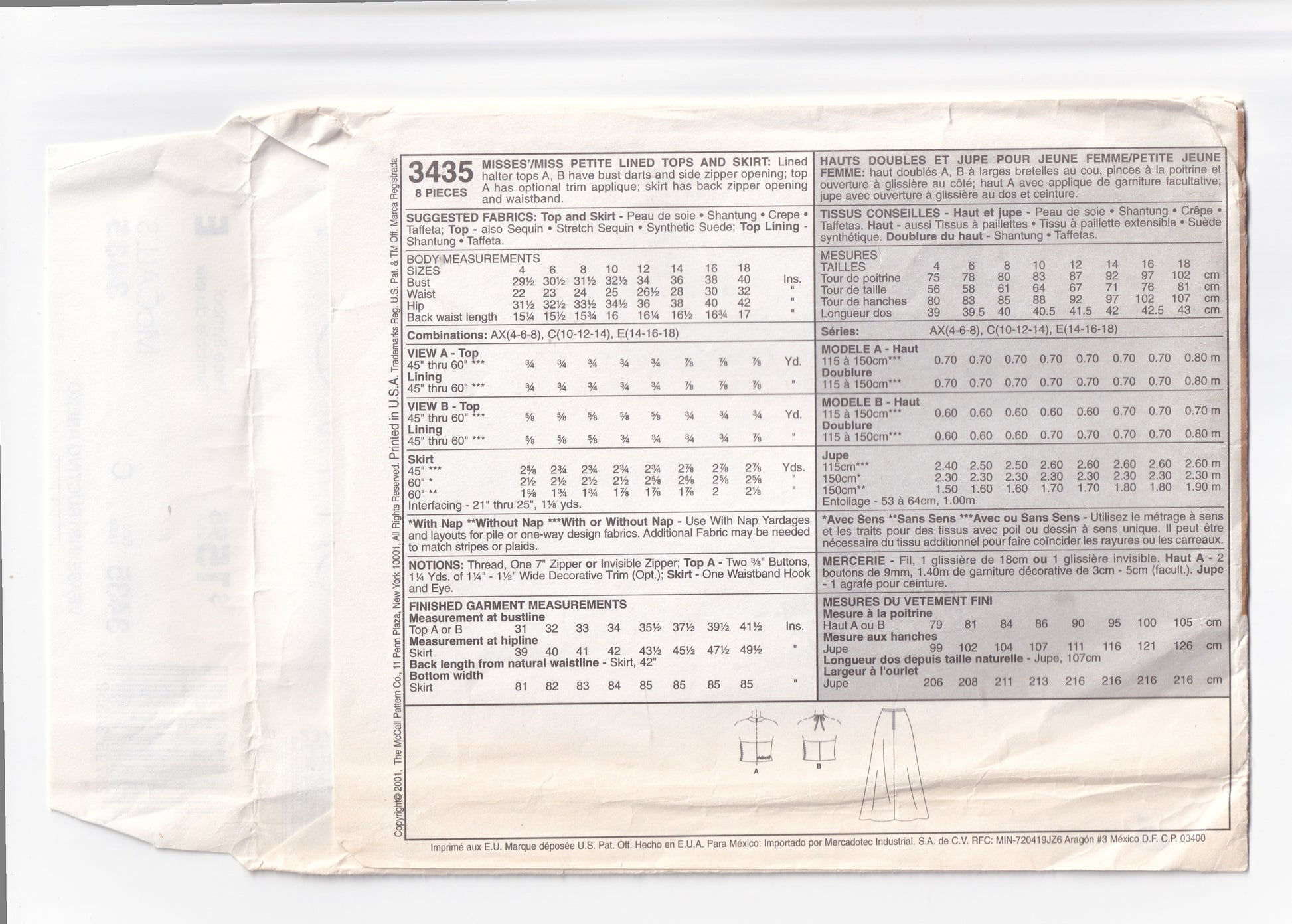 McCall's 3435 sewing pattern, dated 2001, now out of print.