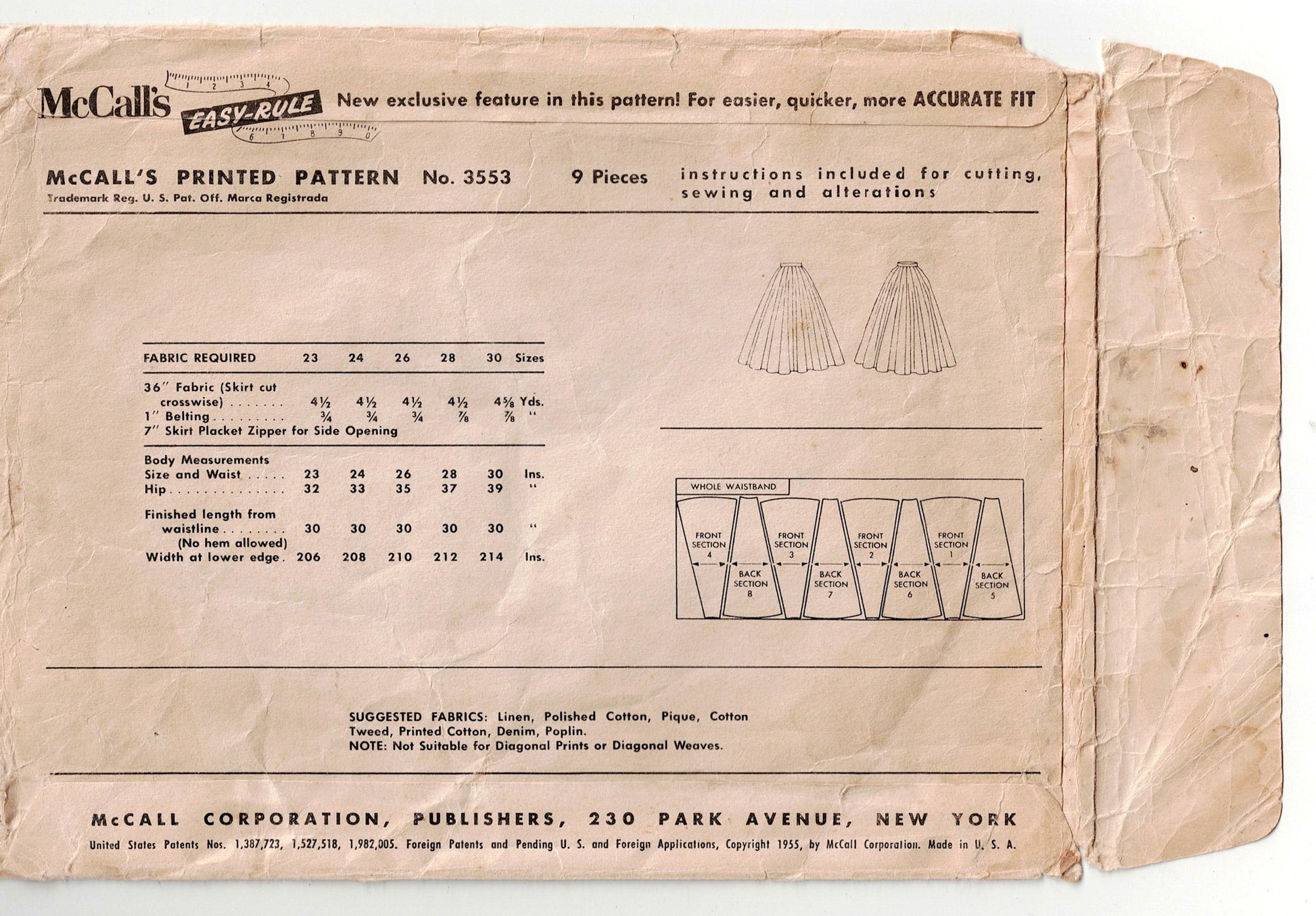 McCall's 3553 Womens Sixteen Gore Skirt 1950s Vintage Sewing Pattern Waist 24 inches UNCUT Factory Folded