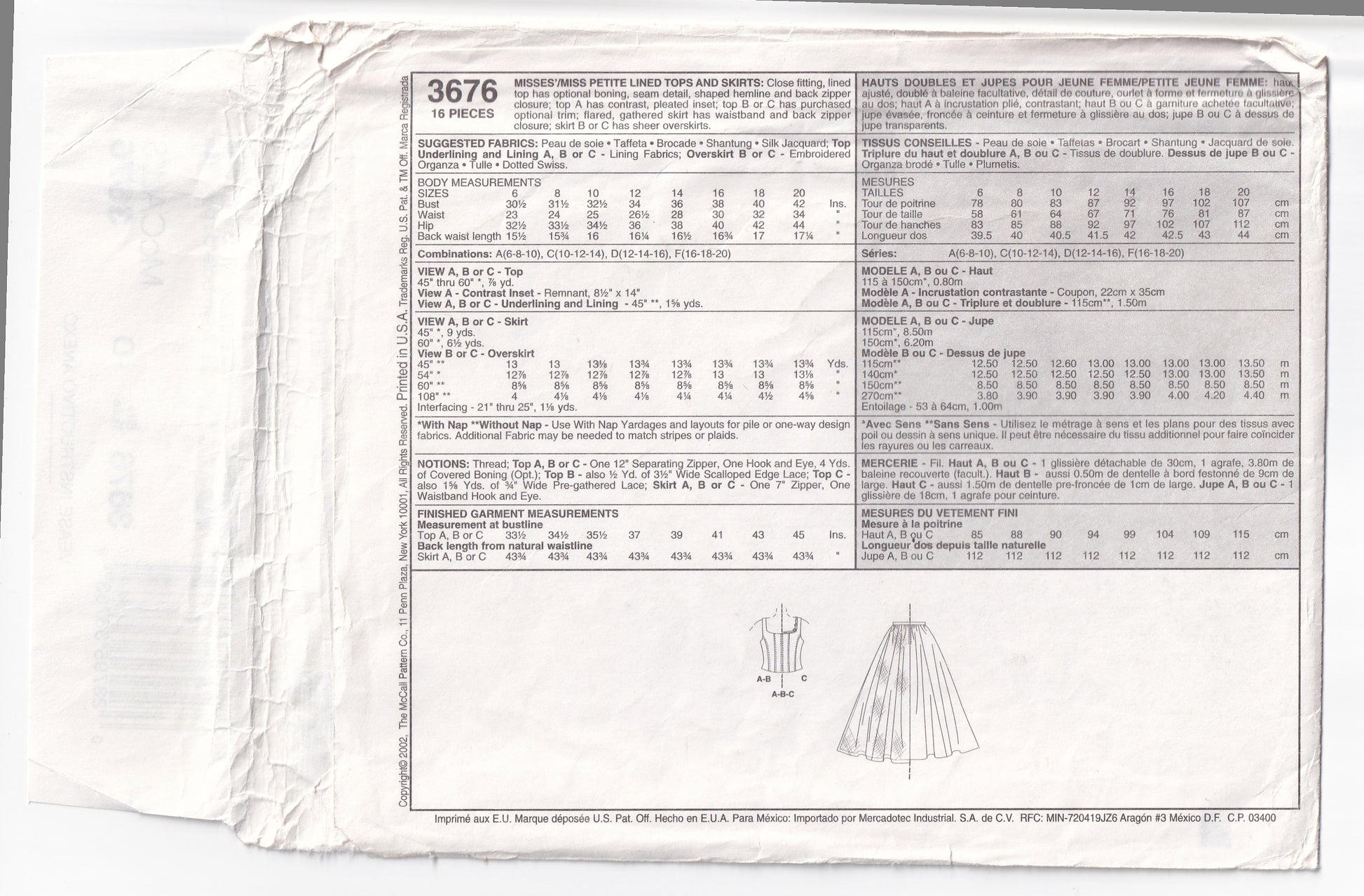 McCall's 3676 sewing pattern, dated 2002, now out of print.