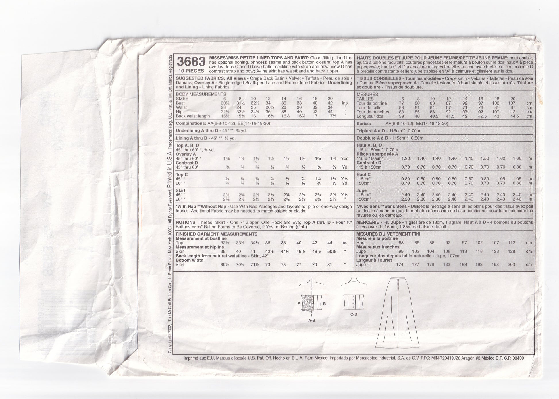 McCall's 3683 out of print paper sewing pattern, dated 2002.