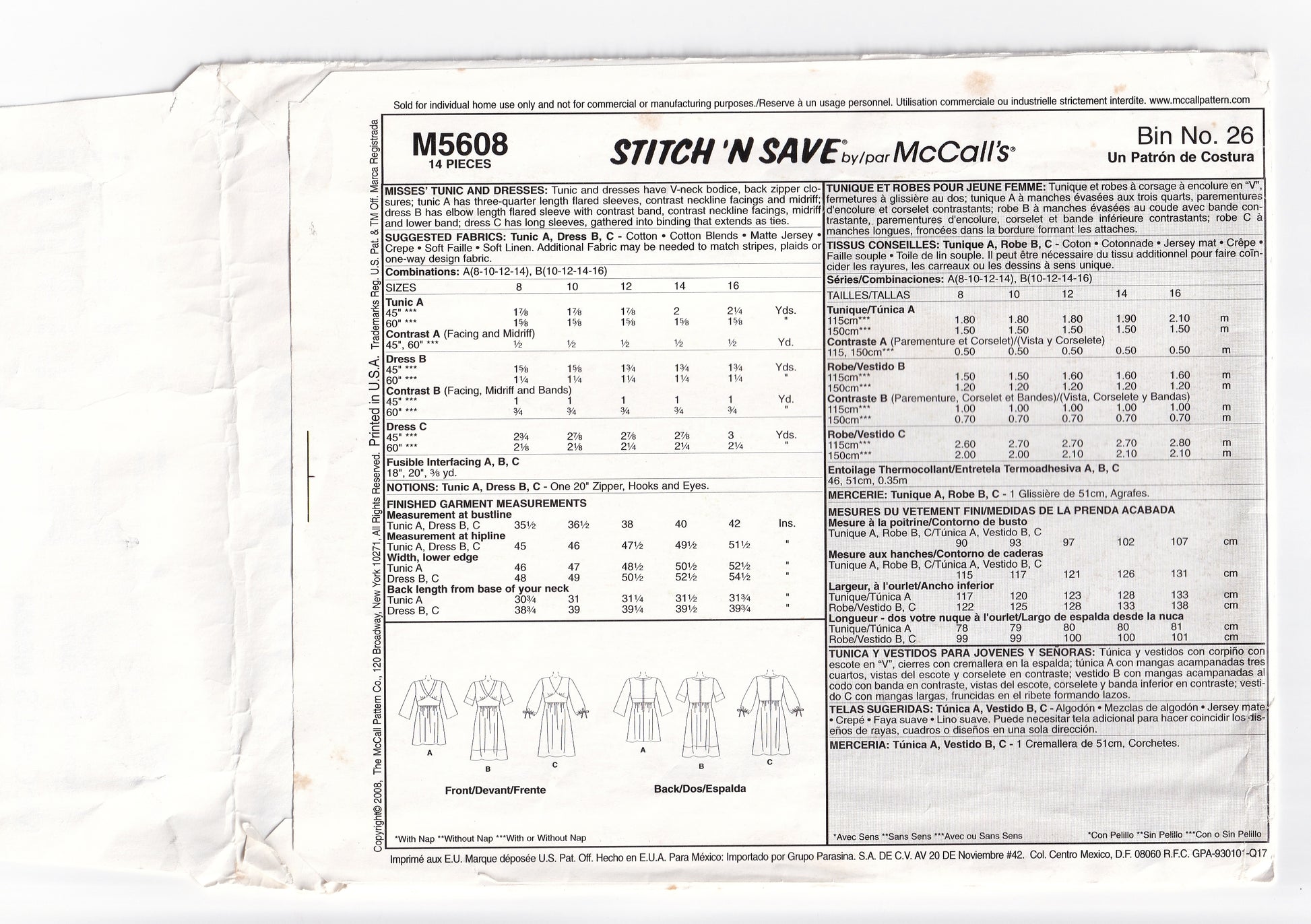 McCall's 5608 sewing pattern, dated 2008, now out of print.