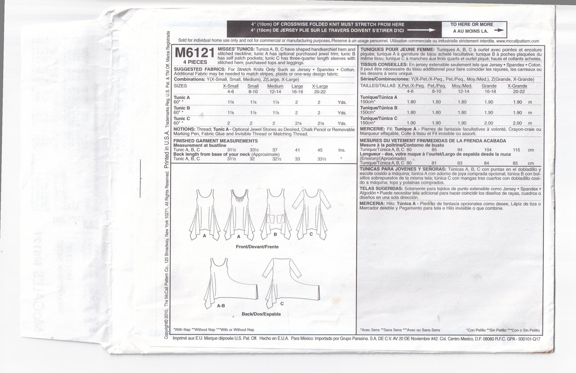 McCall's 6121 sewing pattern, dated 2010, now out of print.