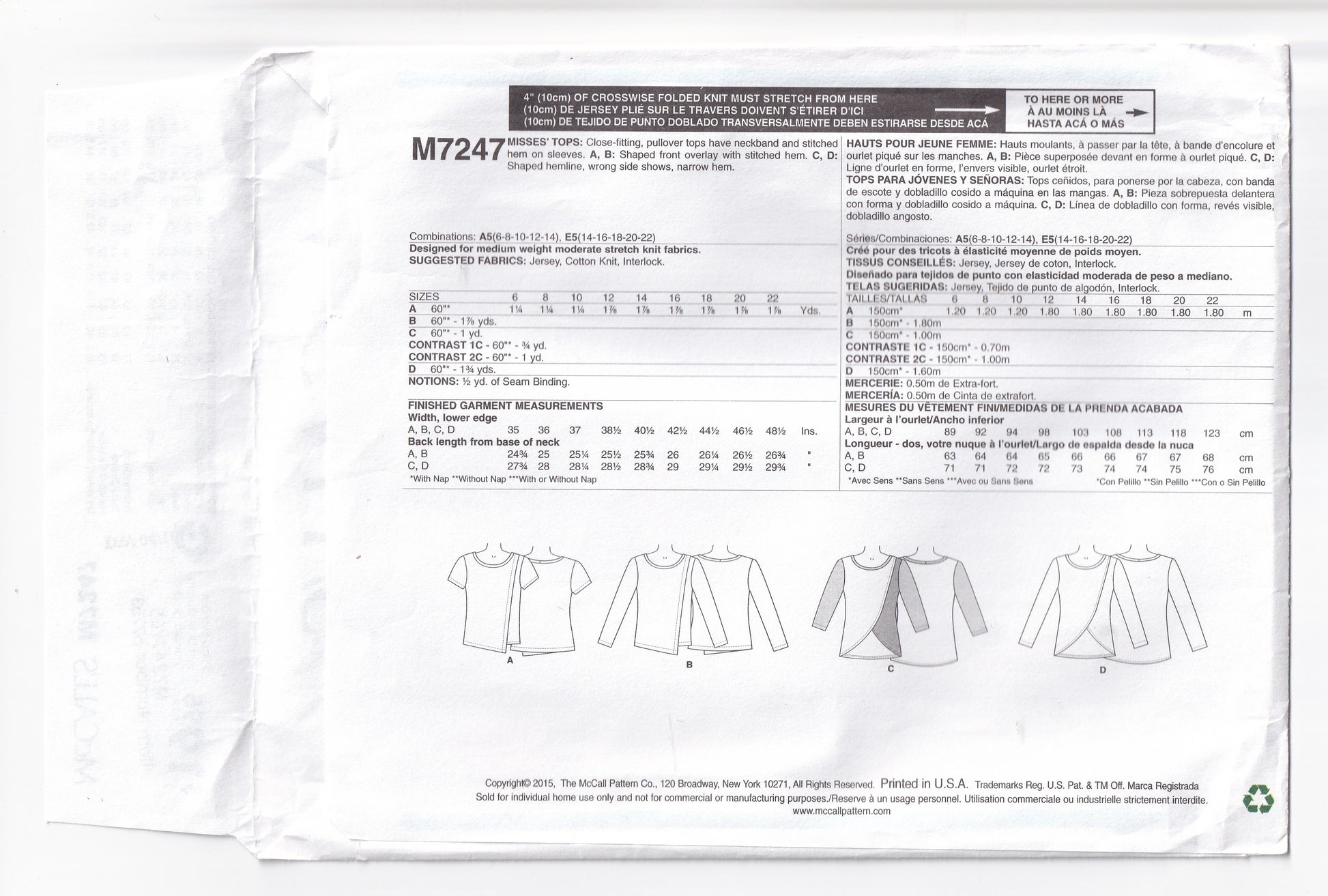 McCall's 7247 sewing pattern, dated 2015, now out of print.
