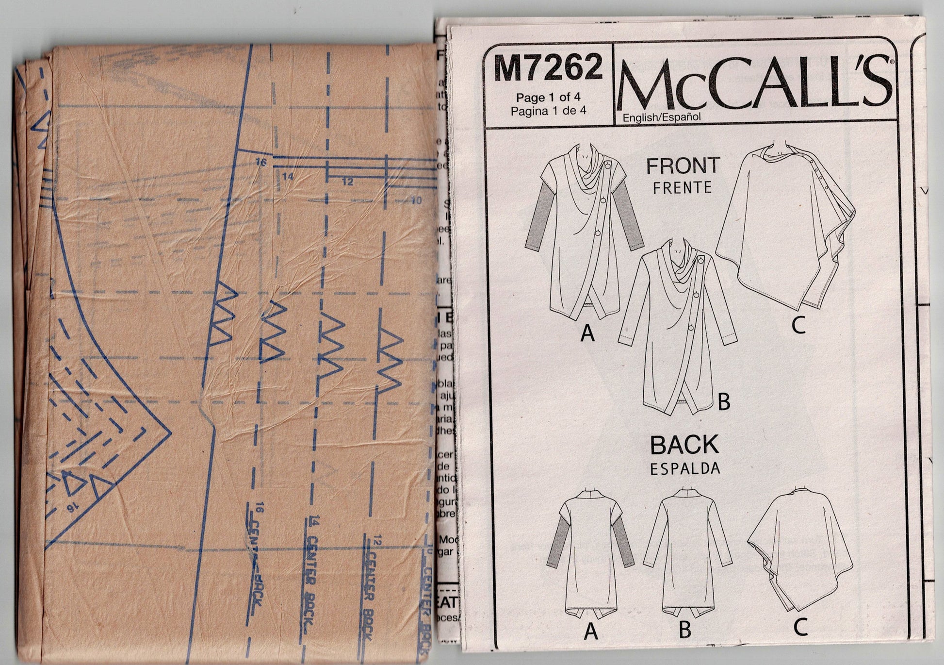McCall's 7262 Womens Stretch Knit Cape Jacket & Poncho Out Of Print Sewing Pattern Sizes 8 - 16 UNCUT Factory Folded