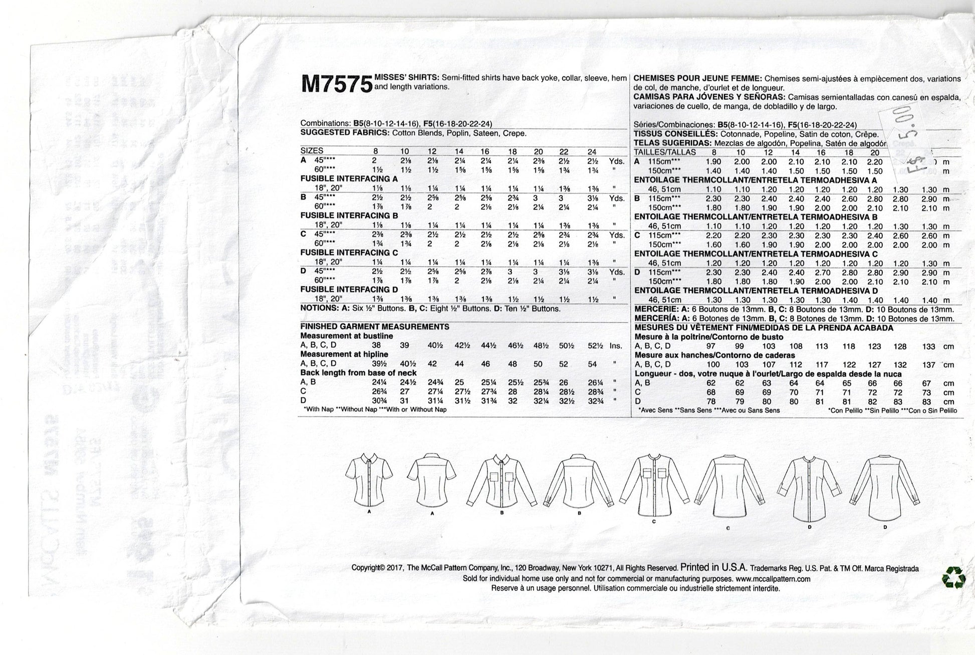 McCall's 7575 sewing pattern, dated 2016, now out of print.