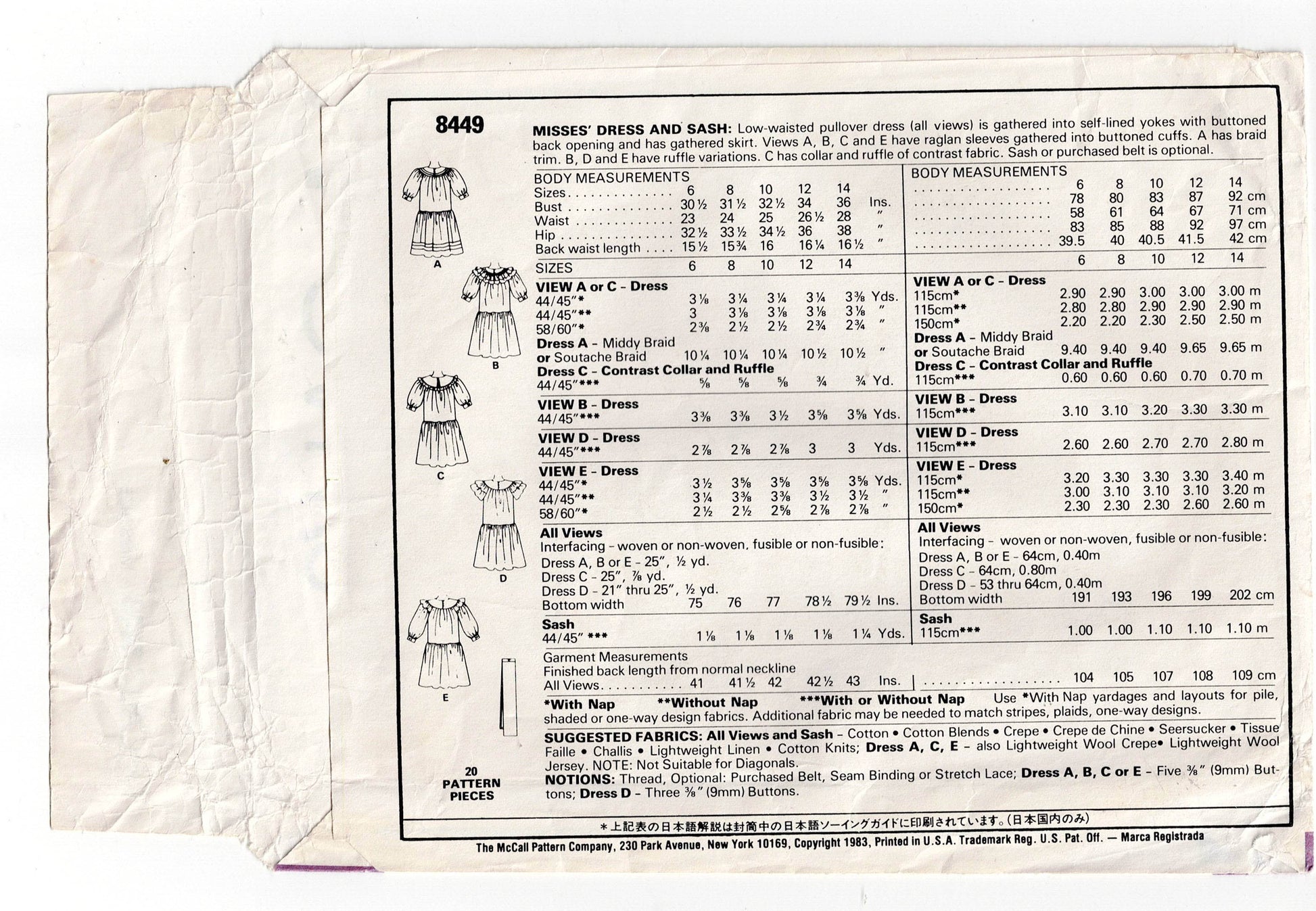 McCall's 8449 vintage sewing pattern, dated 1982.