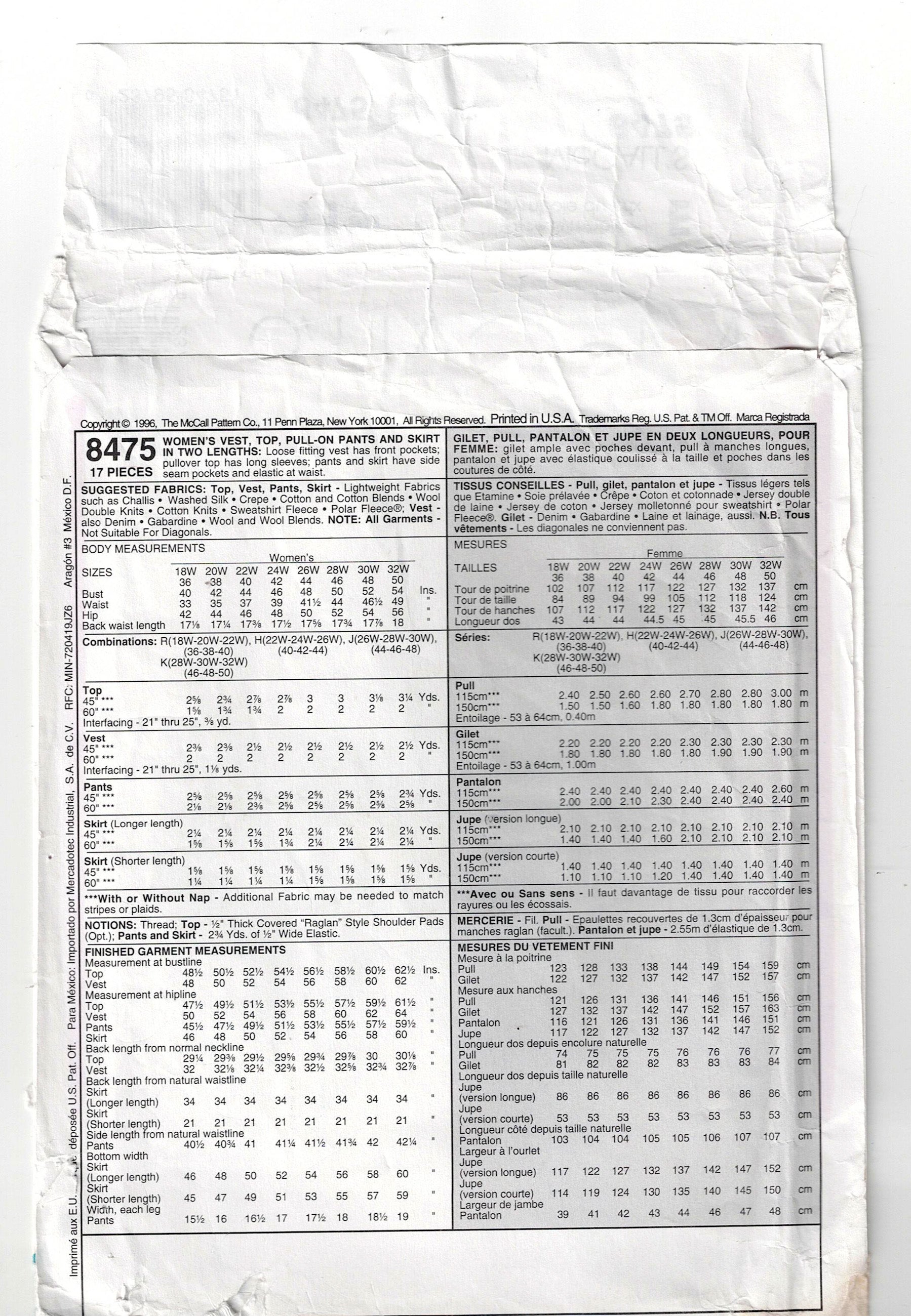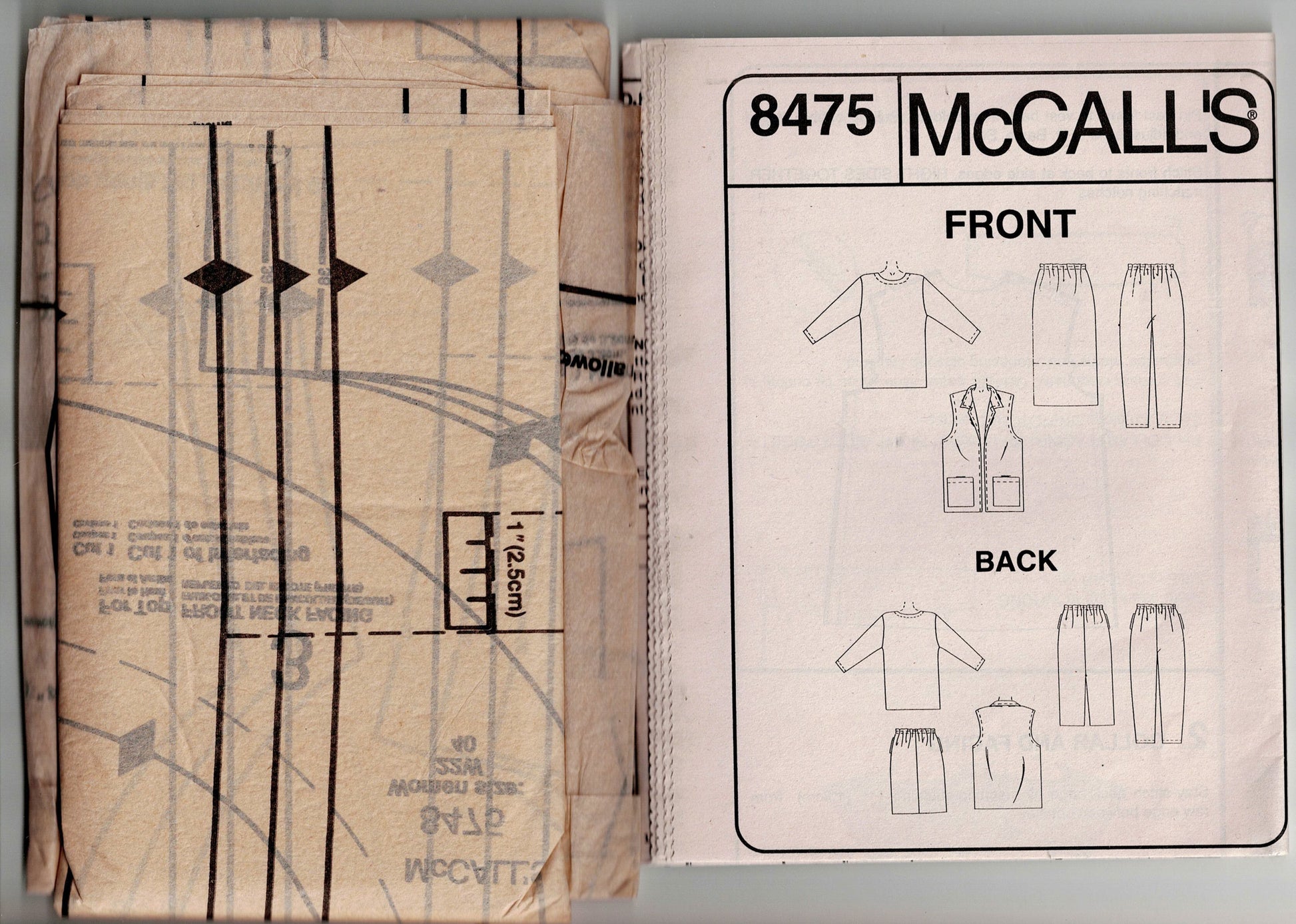 McCall's 8475 Womens EASY Vest Top Skirt & Pants 1990s Sewing Pattern Size 18 W - 22 W UNCUT Factory Folded
