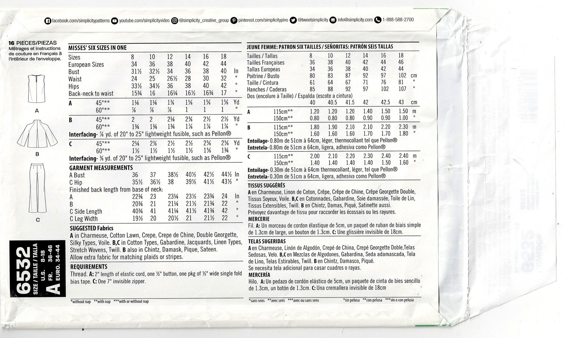 New Look 6532 Womens Funnel Neck Jacket Top & Flared Pants Out Of Print Sewing Pattern Size 8 - 18 UNCUT Factory Folded