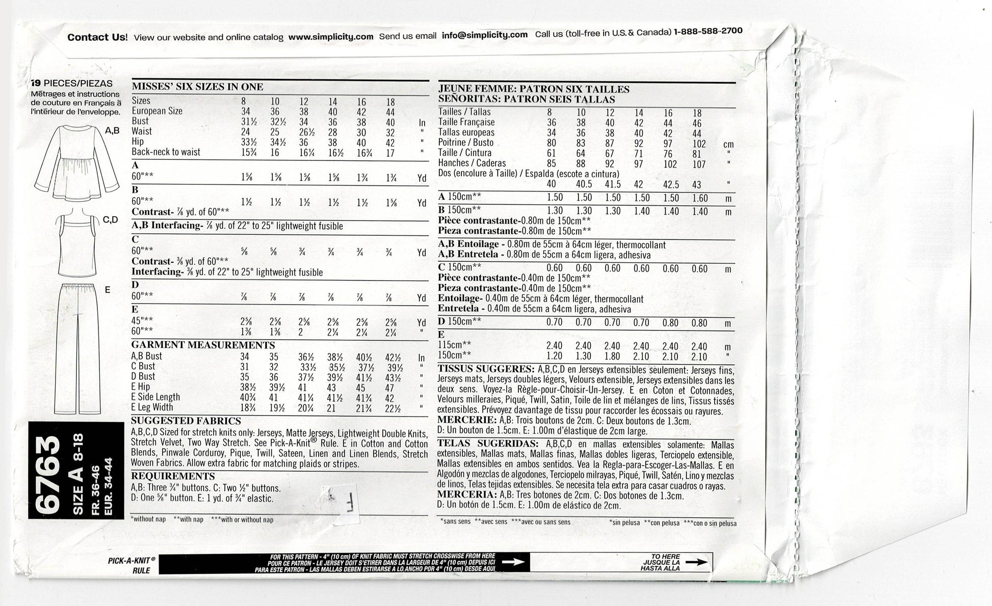 New Look 6763 sewing pattern, dated 2011, now out of print.