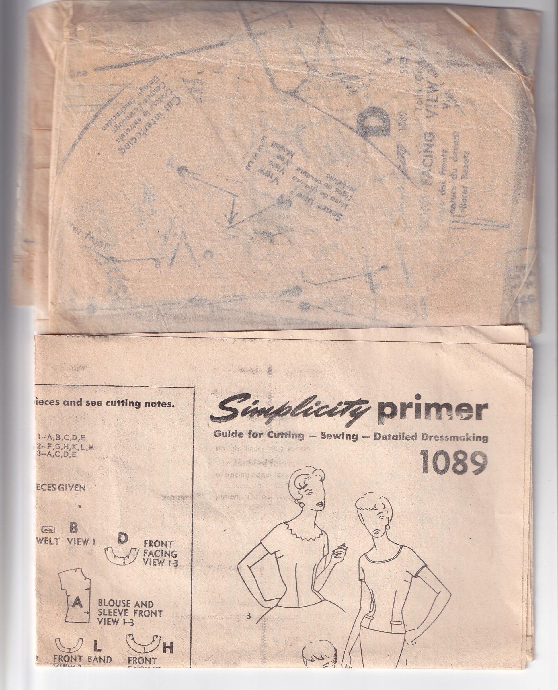 Simplicity 1089 vintage paper sewing pattern, dated 1954.