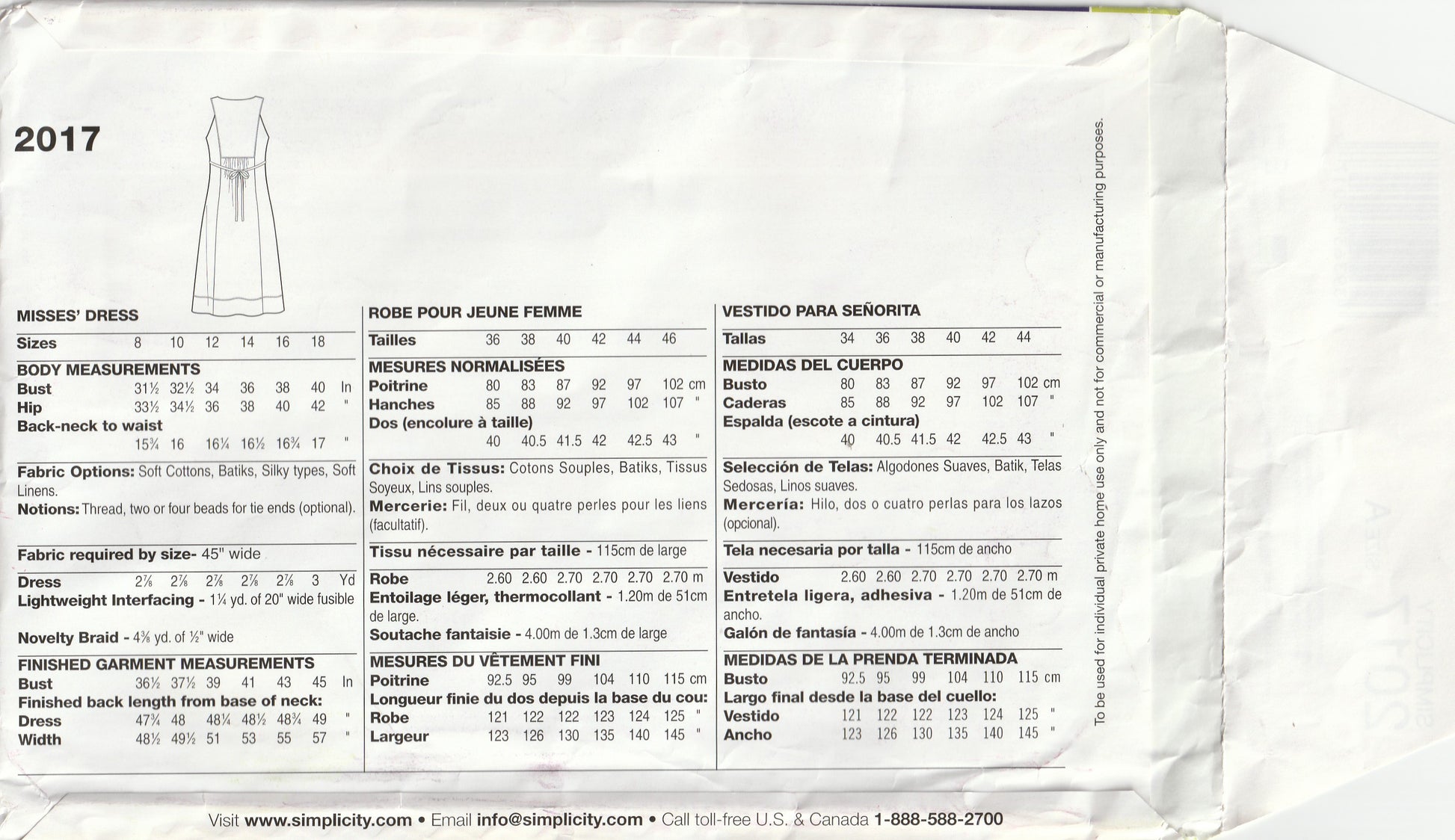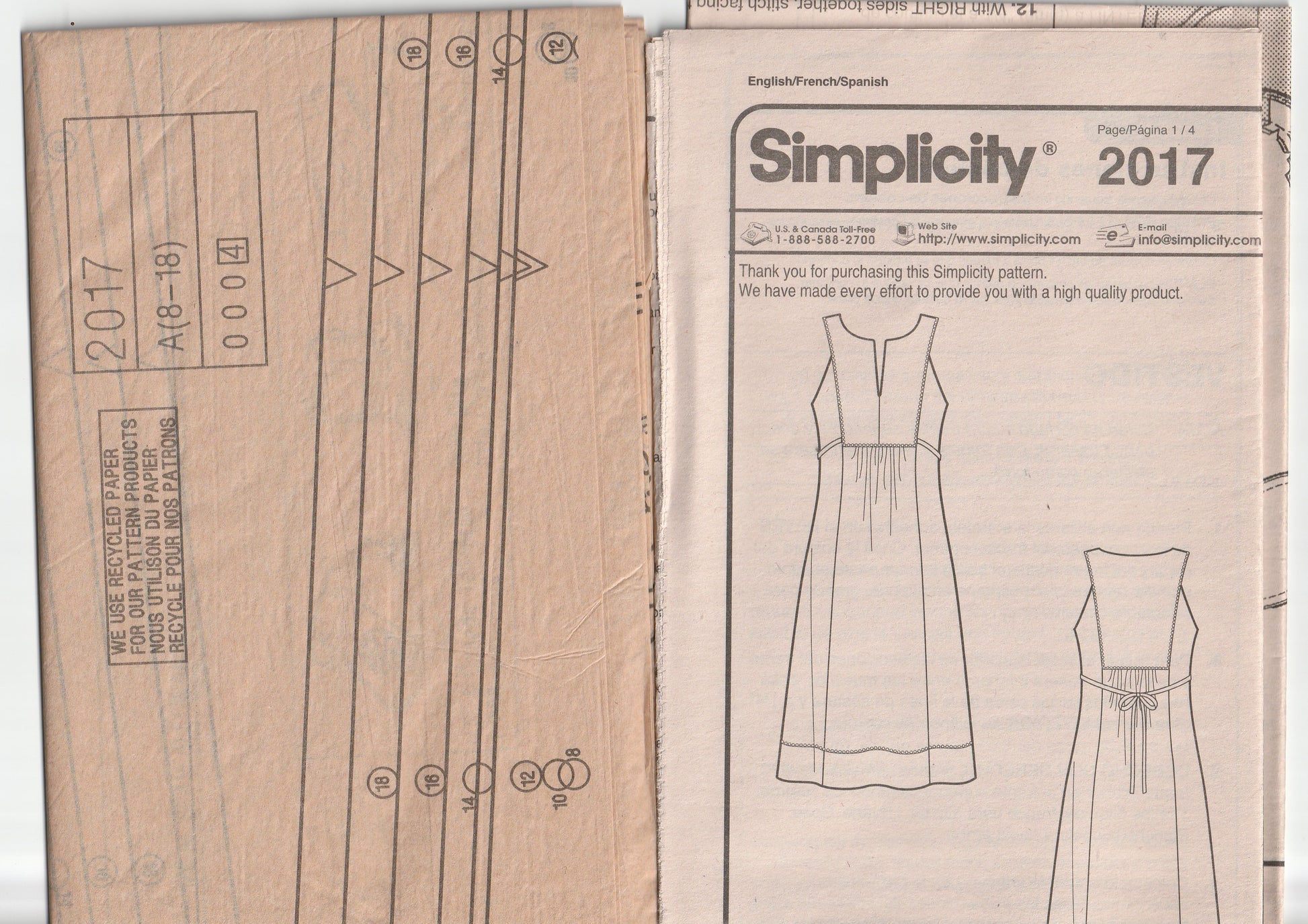 Simplicity 2017 out of print paper sewing pattern, dated ca 2005.