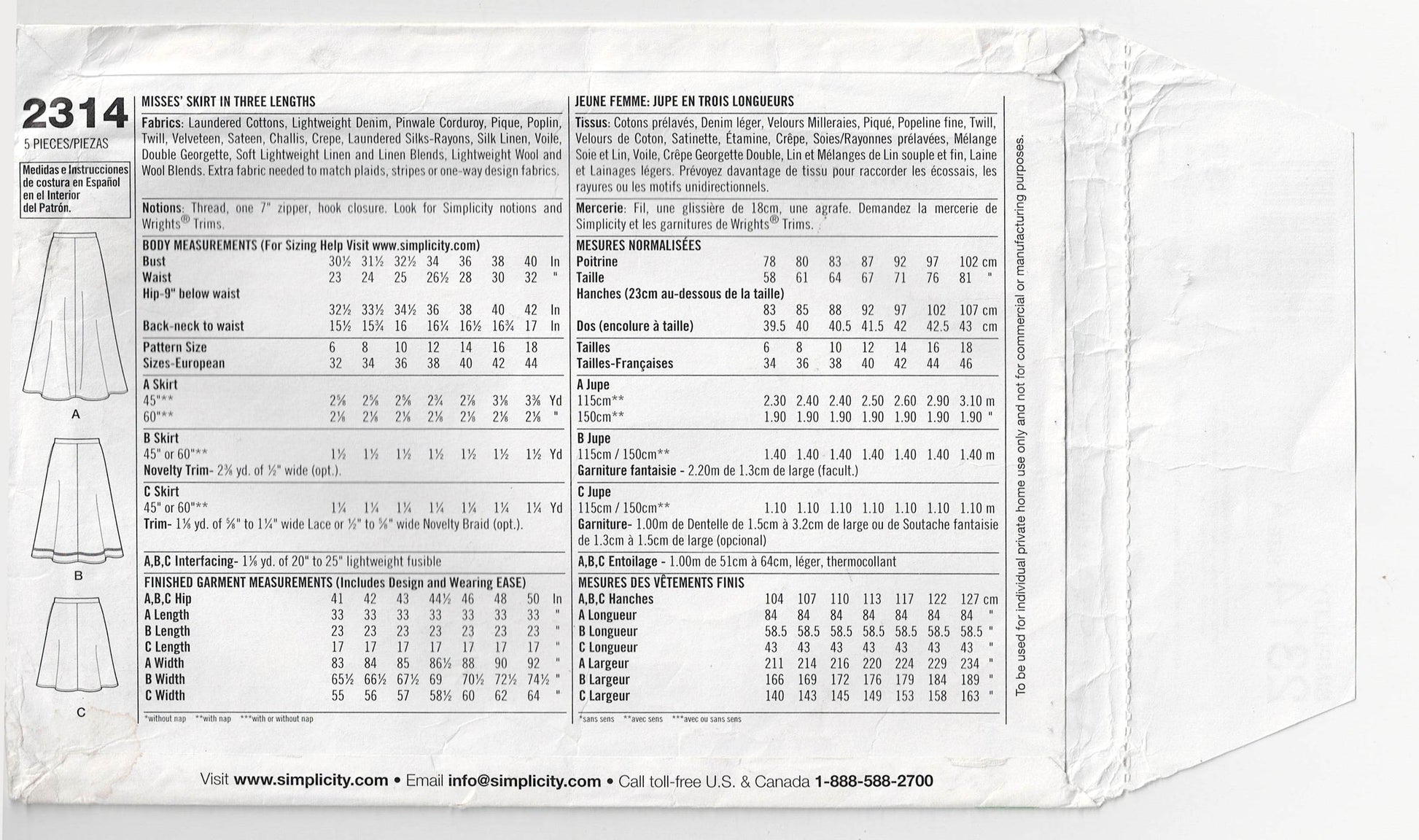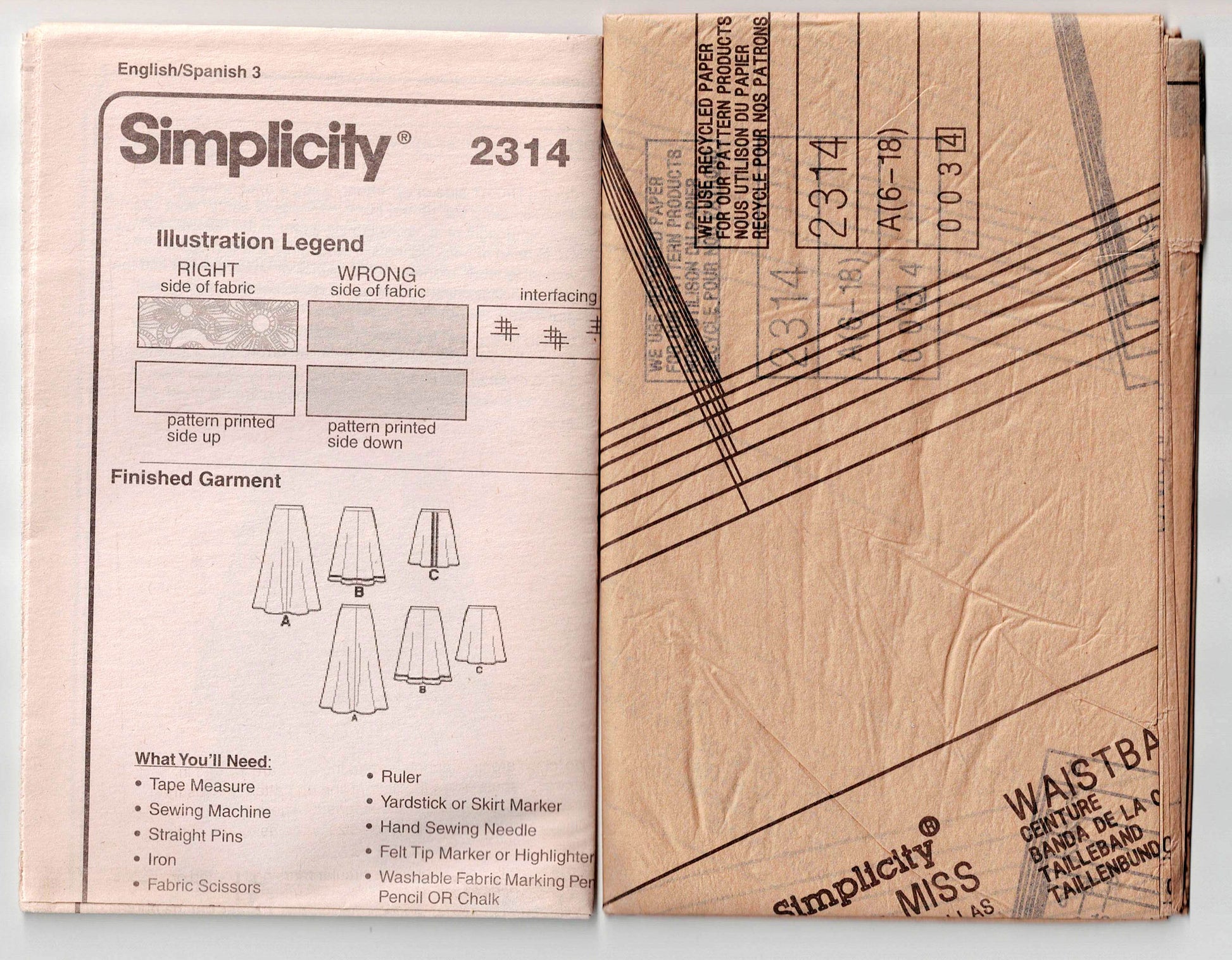 Simplicity 2314 Womens Beginners Skirts Sewing Pattern Size 6 - 18 UNCUT Factory Folded