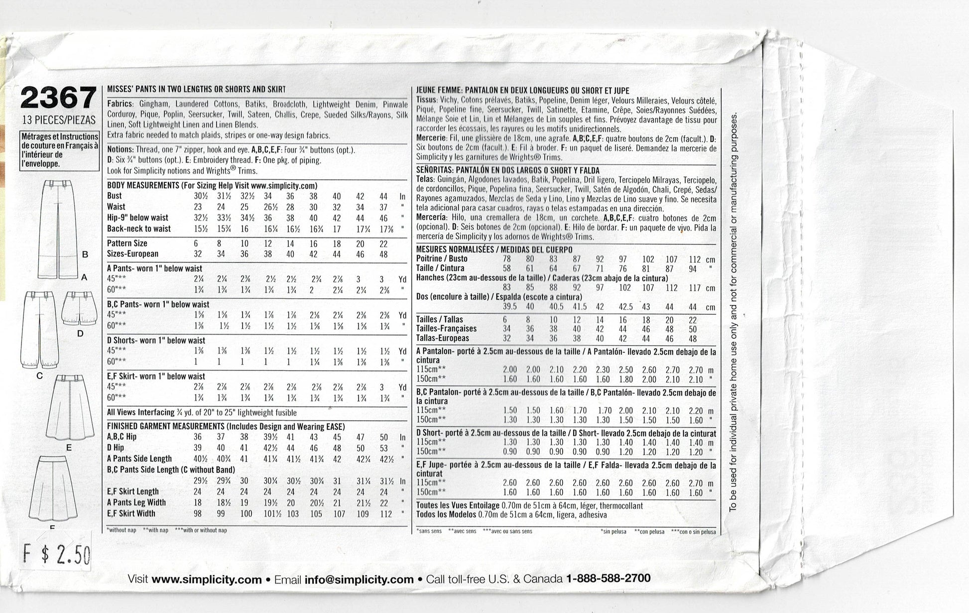 Simplicity 2367 sewing pattern, dated 2010, now out of print.