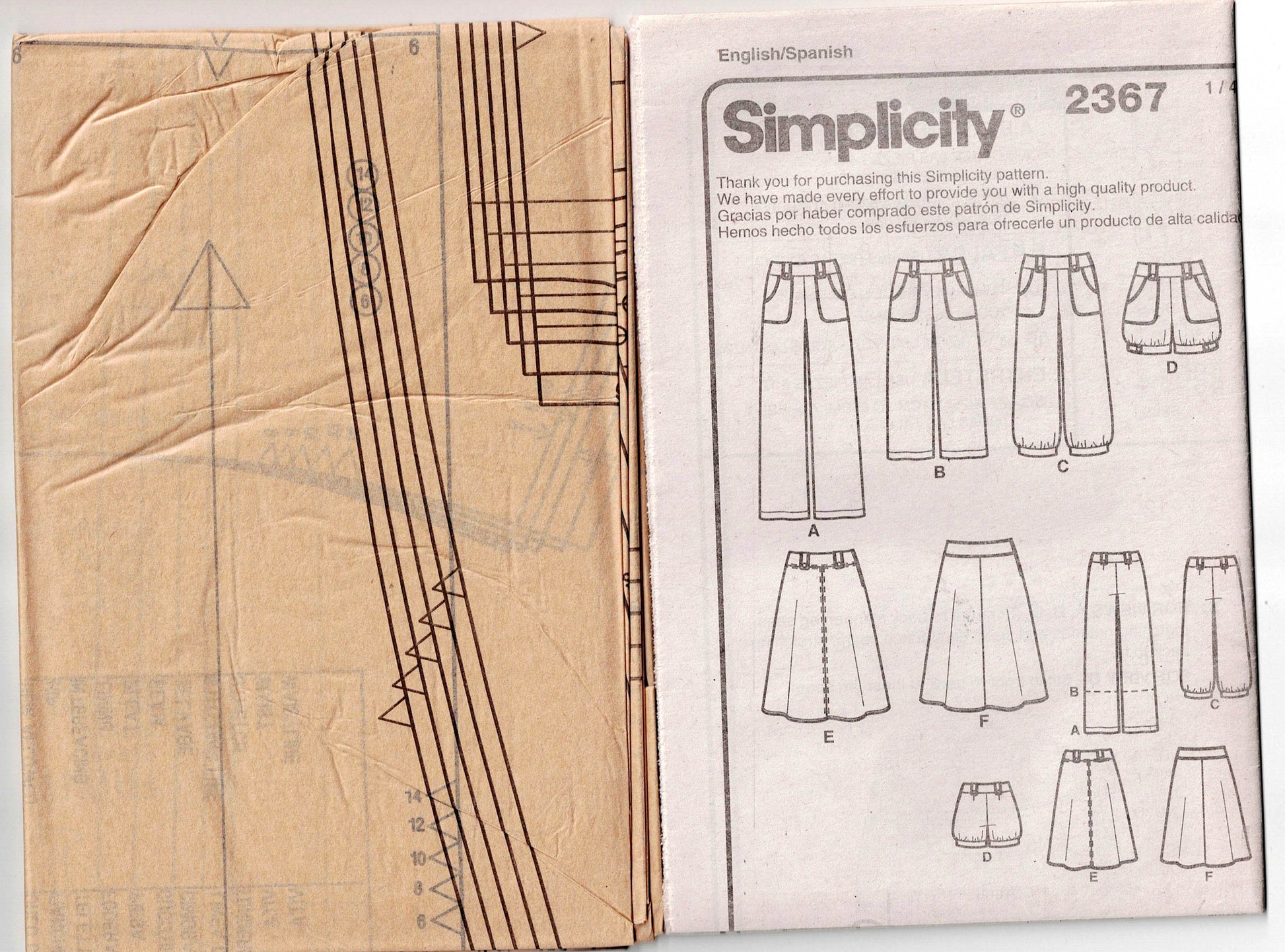 Simplicity 2367 Womens Wide or Puffy Leg Cargo Pants Shorts & Skirt Out Of Print Sewing Pattern Size 6 - 14 UNCUT Factory Folded