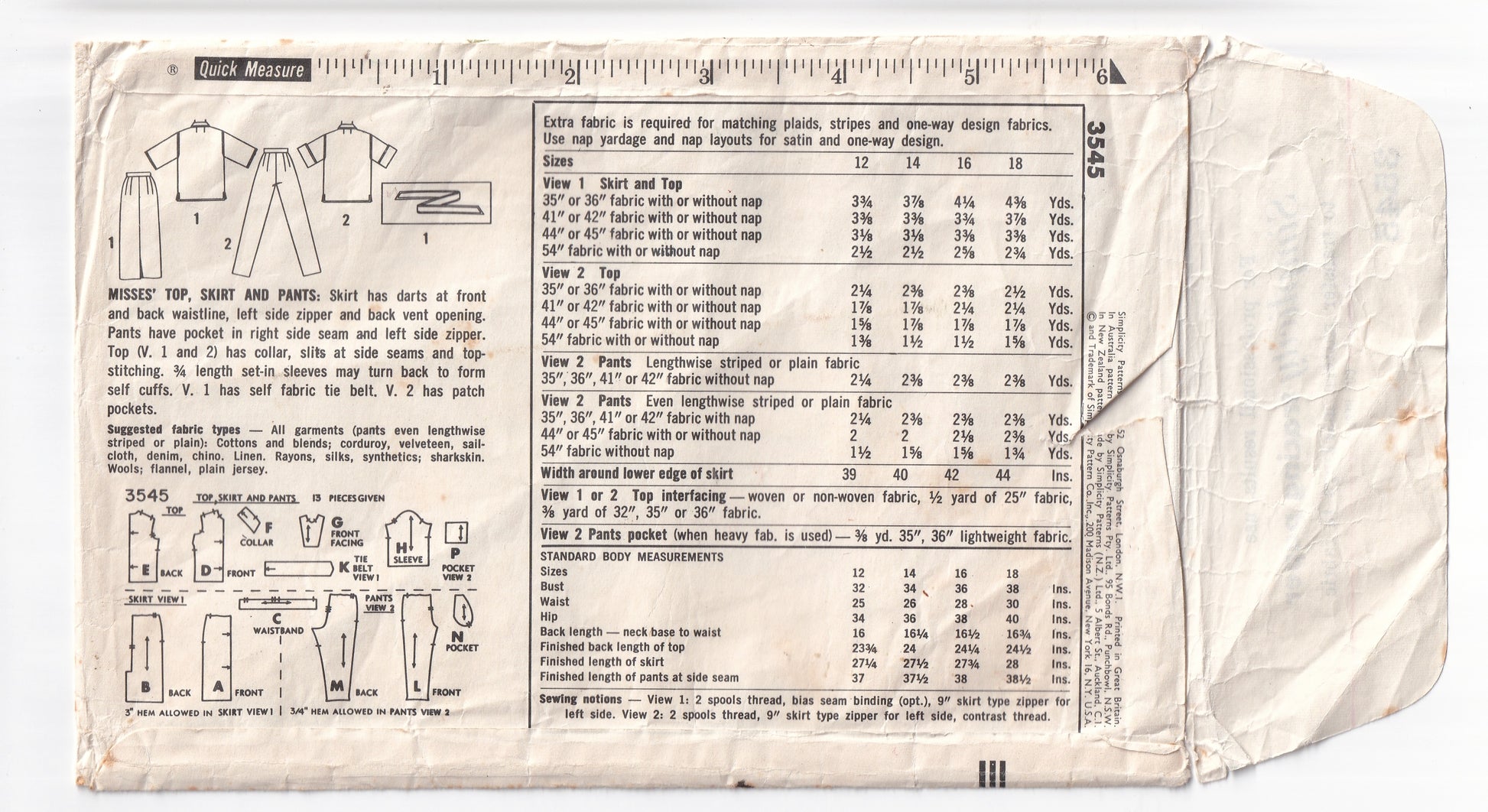 Simplicity 3545 vintage sewing pattern, dated 1960.