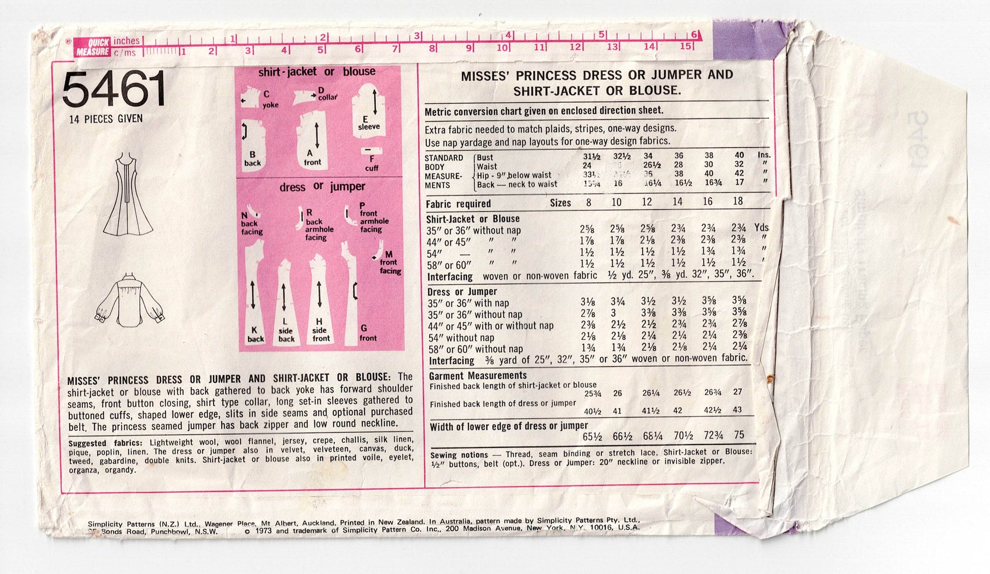 Simplicity 5461 vintage sewing pattern, dated 1972.