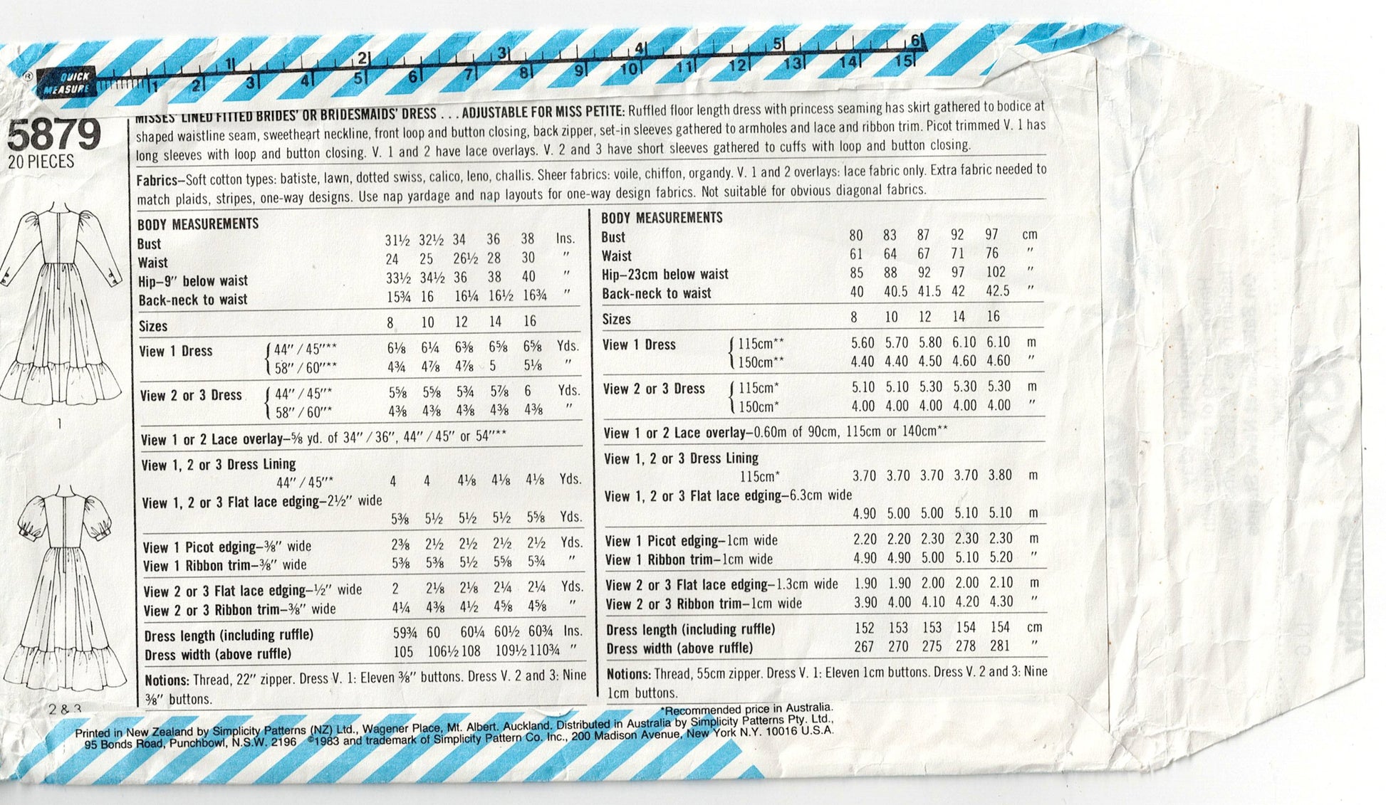 Pattern is cut and checked complete. Envelope is in good vintage condition. An advertising pamphlet from the same era, from Dundee Bridal Boutique in Brisbane, is included.