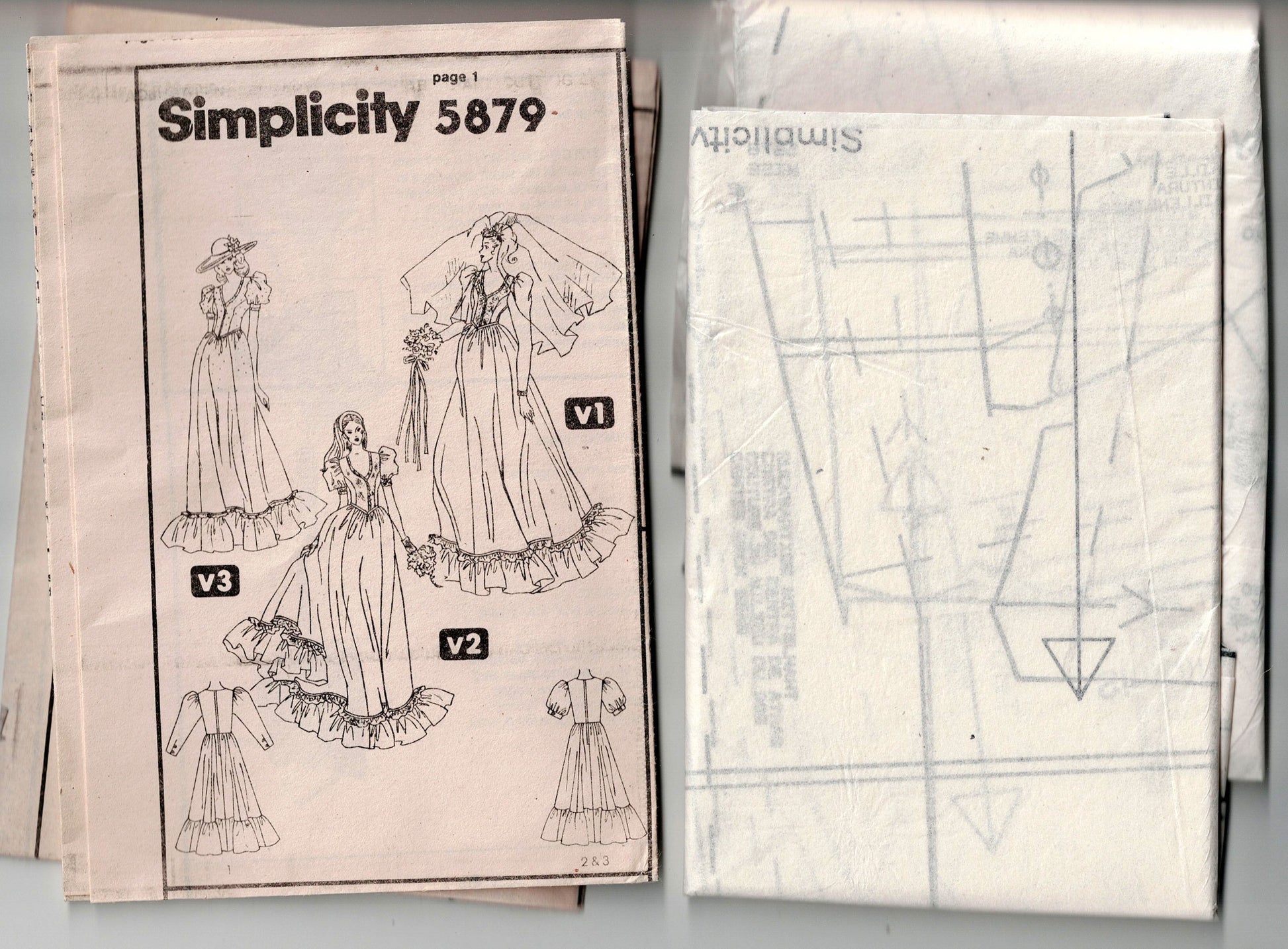 Simplicity 5879 GUNNE SAX Womens Puff Sleeved Full Ruffled Skirt Wedding Dress 1980s Vintage Sewing Pattern Size 12 Bust 34 Inches