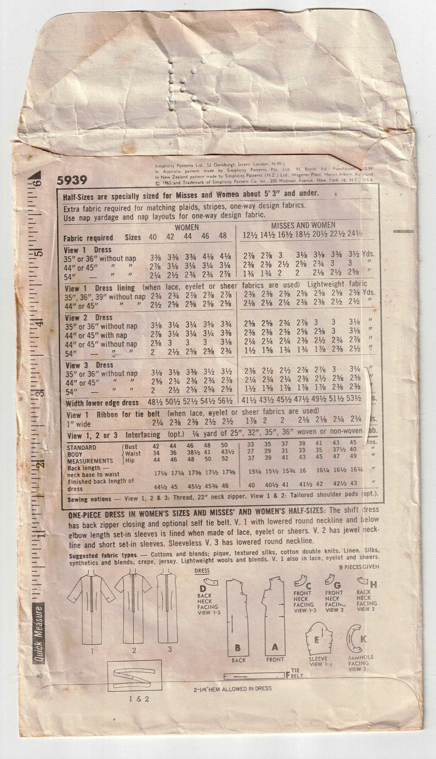 Simplicity 5939 Womens Half Size Shift Dress 1960s Vintage Sewing Pattern Size 14 1/2 Bust 35 inches UNUSED Factory Folded