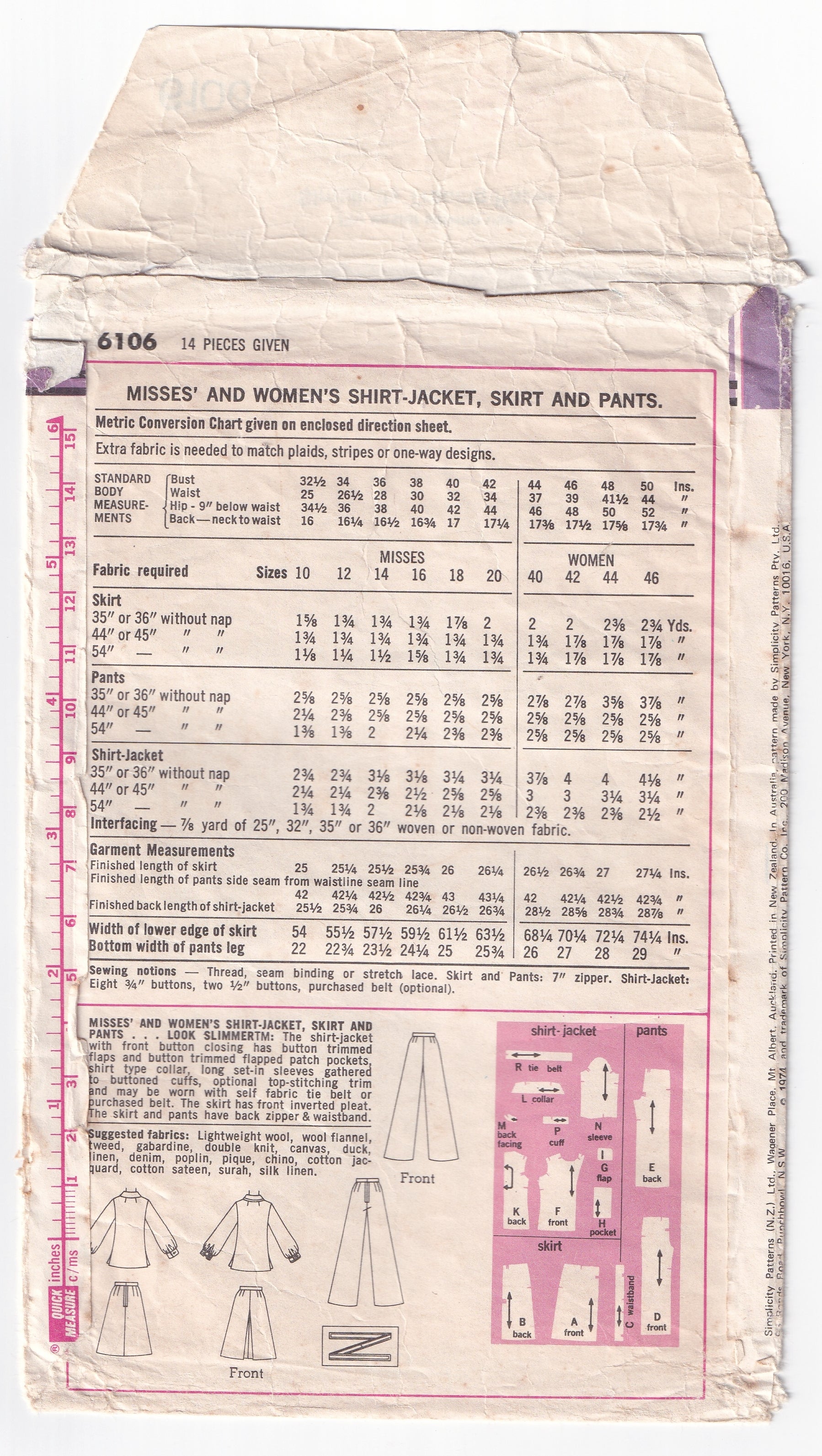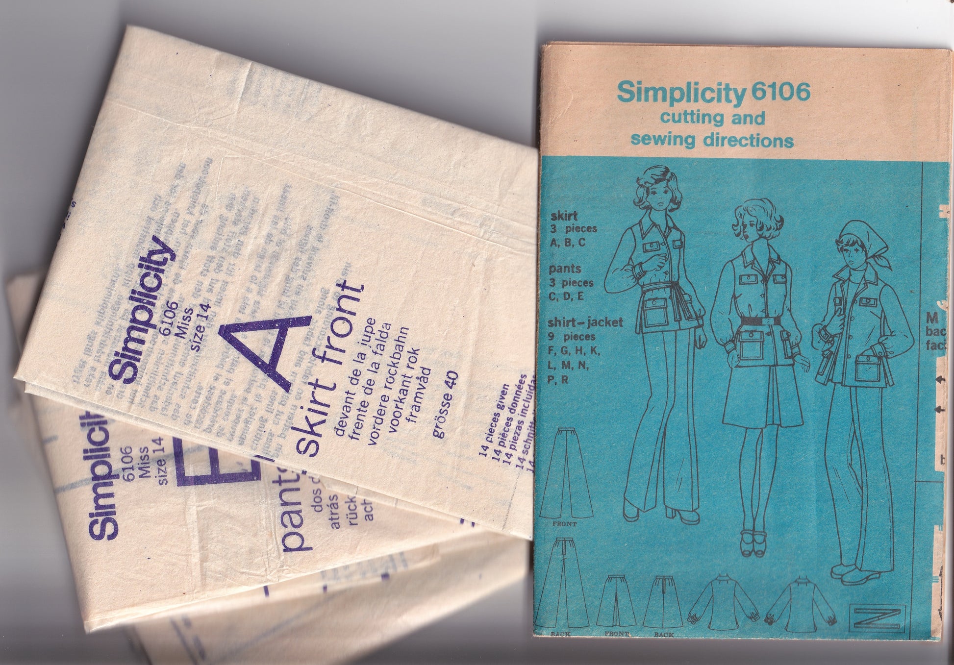 Simplicity 6106 Womens Retro Safari Shirt Jacket Flares & Skirt 1970s Vintage Sewing Pattern Size 14 Bust 36 Inches