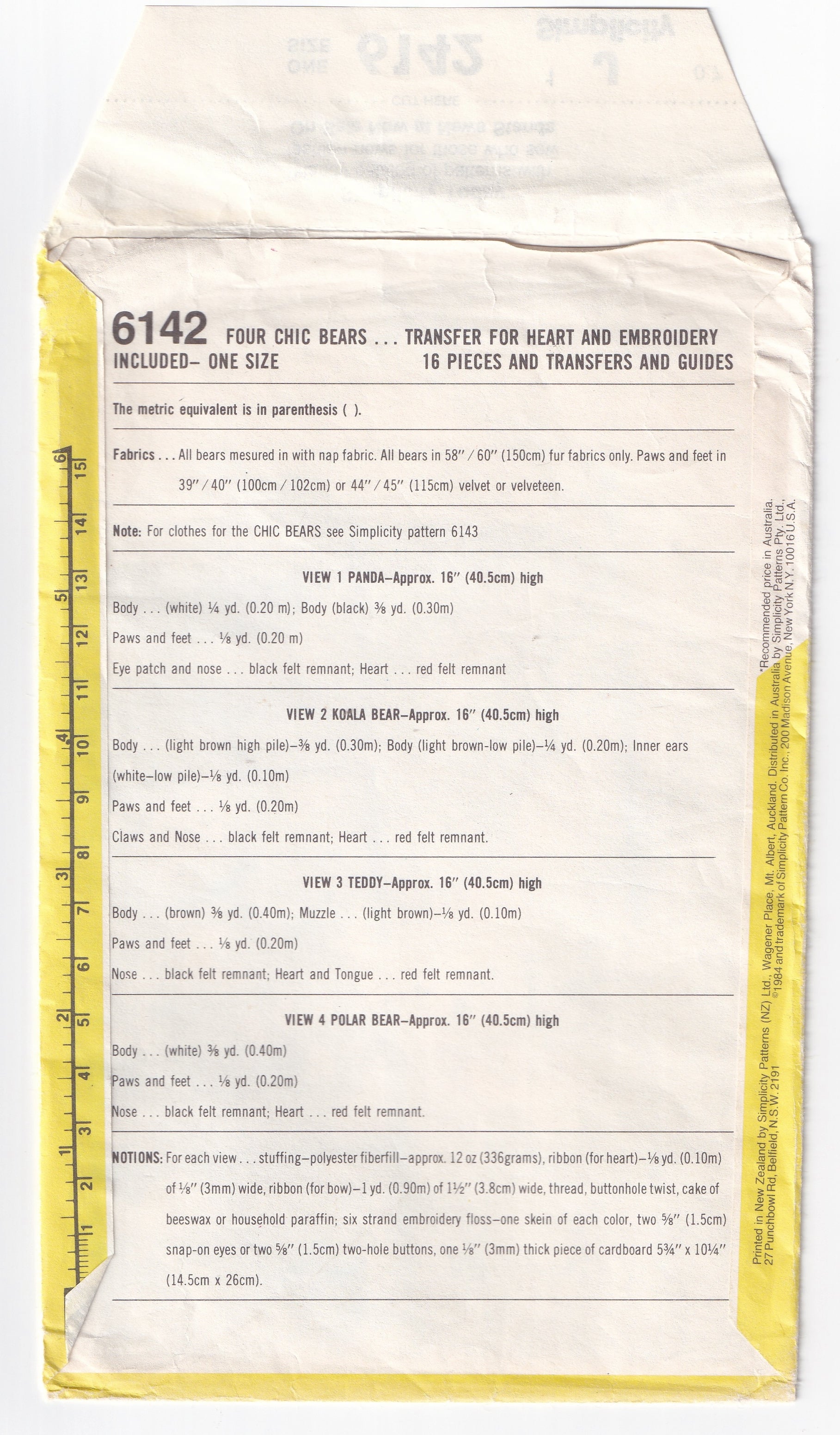Four Chic Bears ... Transfer for Heart and Embroidery Included: The envelope contains patterns and instructions to make a panda, koala, teddy and a polar bear.