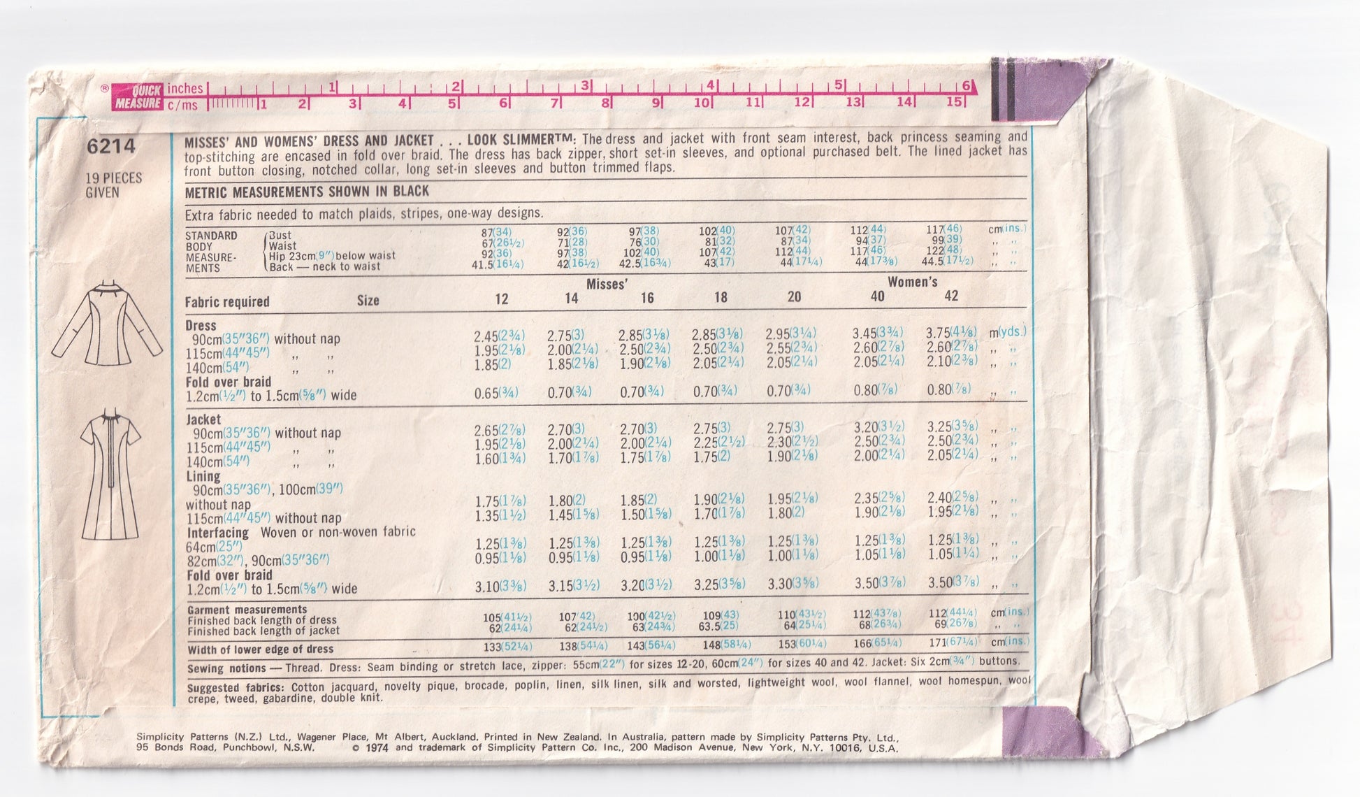 Simplicity 6214 Womens Princess Seamed Dress & Jacket 1970s Vintage Sewing Pattern Size 16 Bust 38 inches