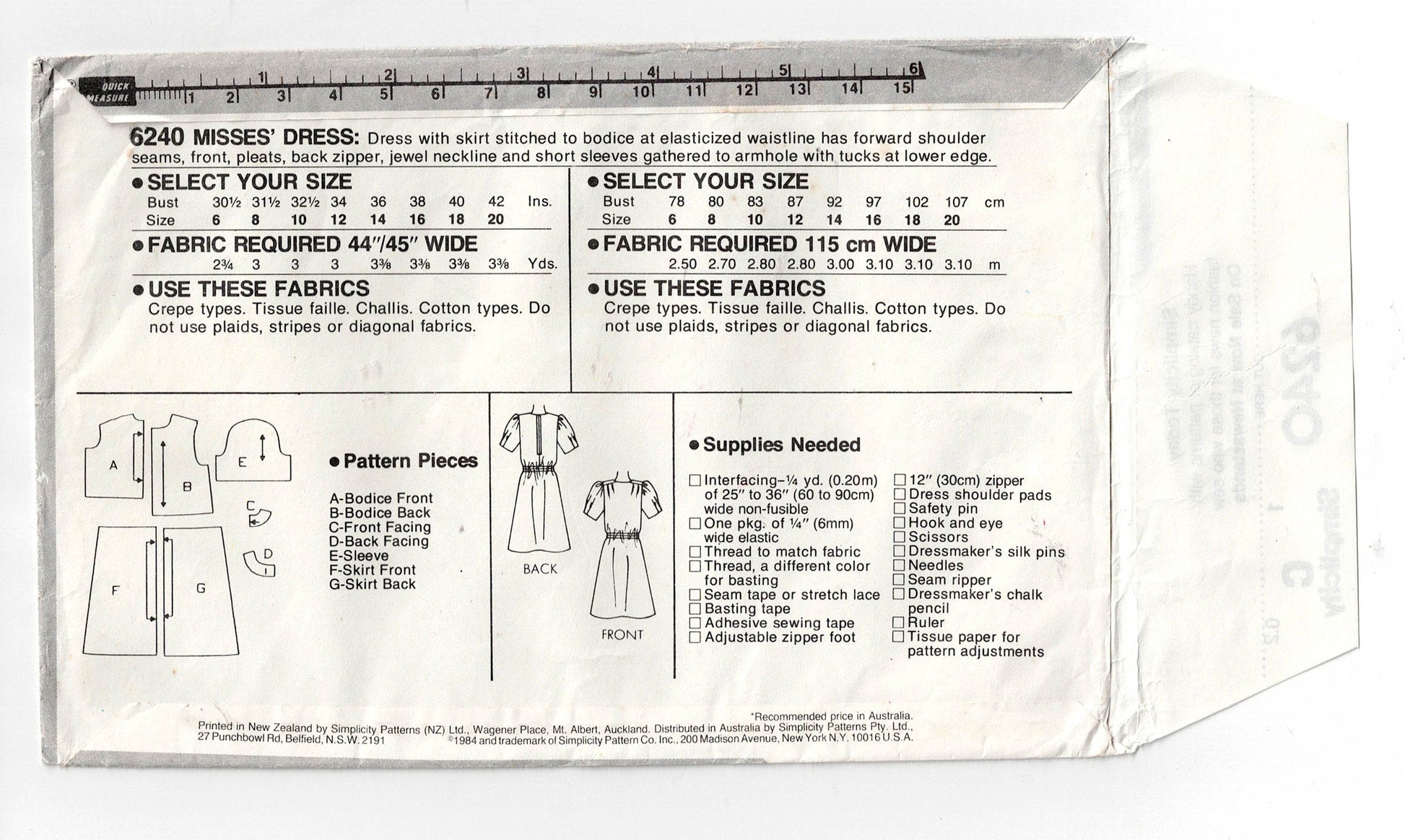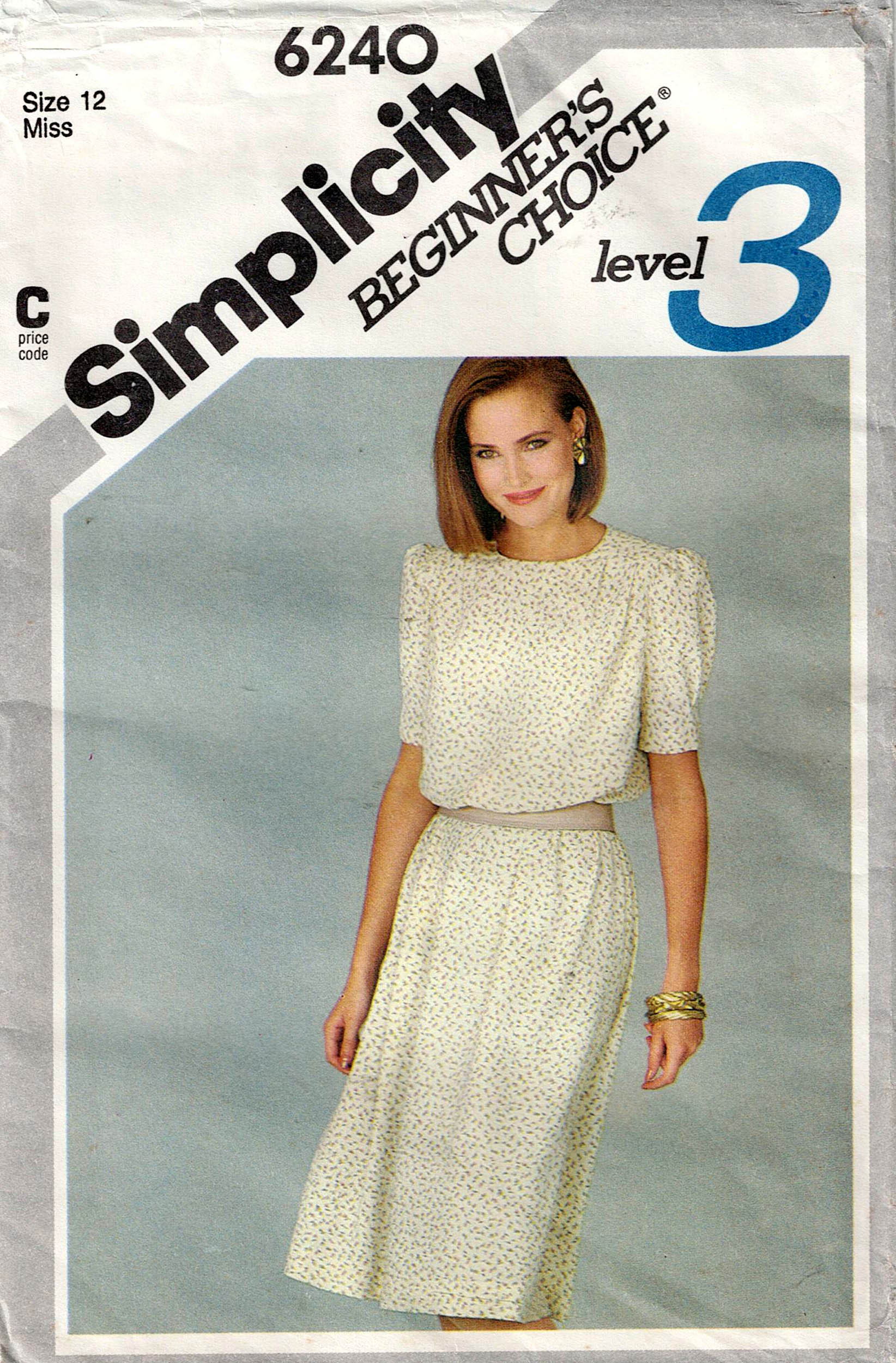 Simplicity 6240 Womens EASY Tucked Shoulder Dress 1980s Vintage Sewing Pattern Size 12 Bust 34 inches