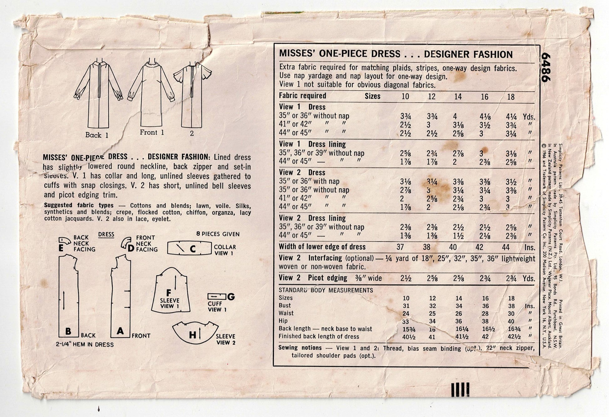 Simplicity 6486 vintage sewing pattern; ©1966.