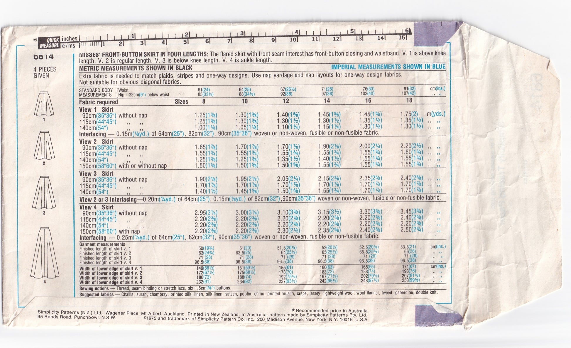 Simplicity 6814 Womens Panelled A Line Skirt 1970s Vintage Sewing Pattern Size 10 Waist 25 Inches