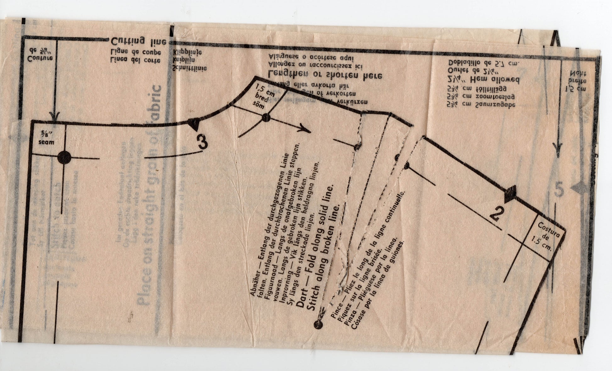 Pattern is printed tissue, cut and checked complete. One area of tissue has some damage from a tracing wheel ( see photo). Envelope is in very good vintage condition.