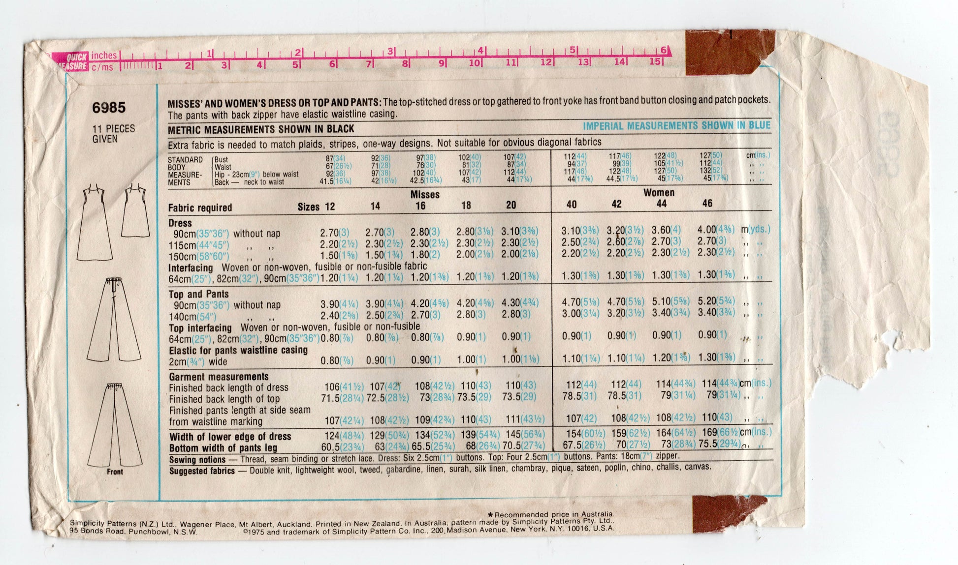 Simplicity 6985 vintage sewing pattern; ©1975.