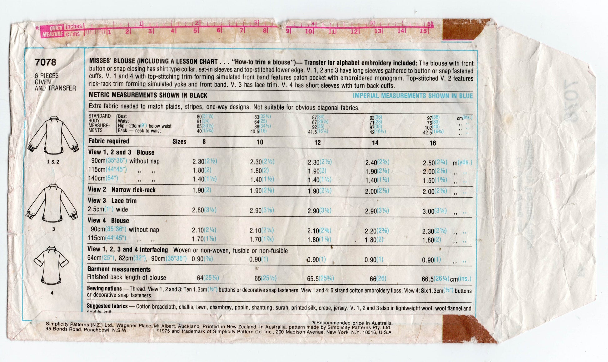 Simplicity 7078 vintage sewing pattern, Copyright 1975