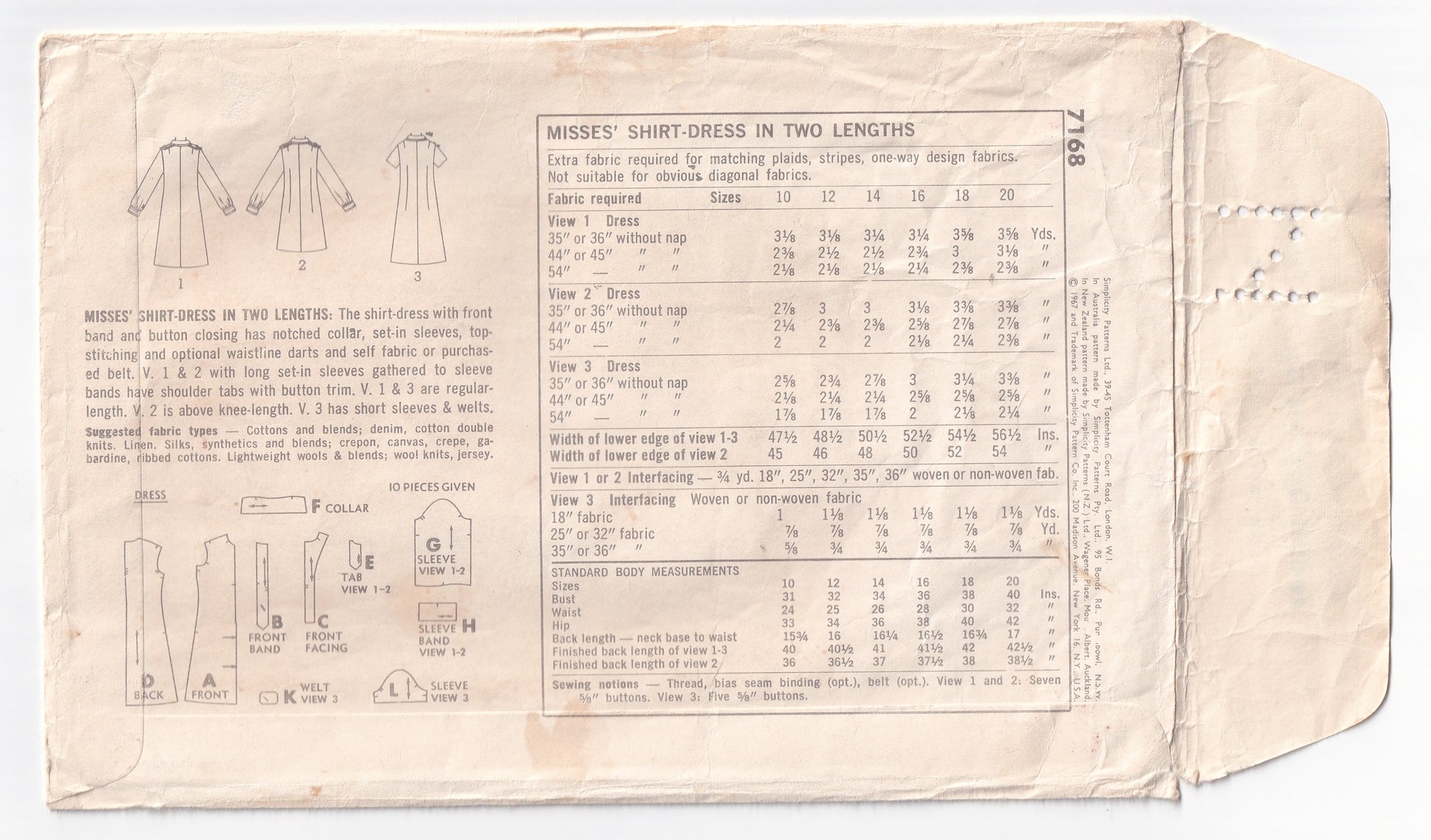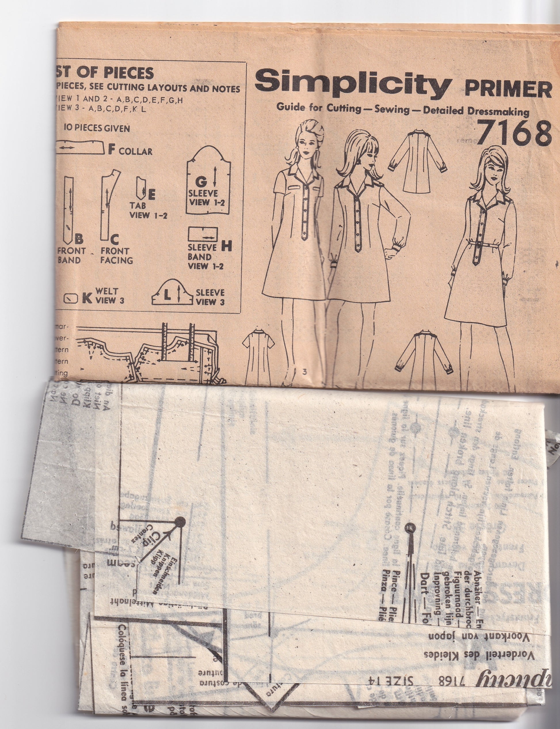 Simplicity 7168 Vintage Paper Sewing Pattern, dated 1967.